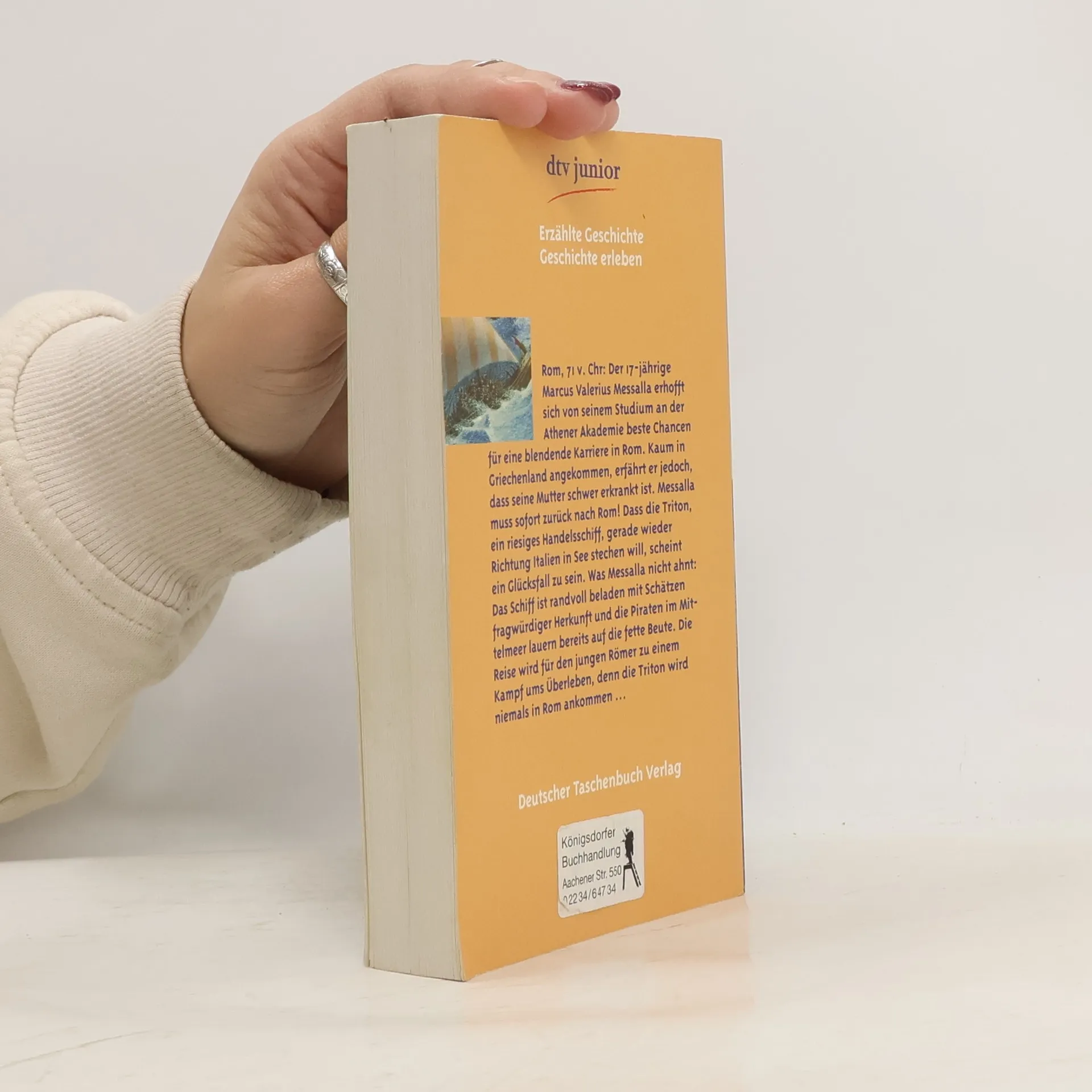 Rom, 71 v. Chr: Der 17-jährige marcus Valerius Messalla erhofft sich von seinem Studium an der Athener Akademie beste Chancen für eine blendende Karriere in Rom. Kaum in Griechenland angekommen, erfährt er jedoch, dass seine Mutter schwer erkrankt ist. Messalla muss sofort zurück nach Rom! Dass die Triton, ein riesiges Handelsschiff, gerade wieder Richtung Italien in See stechen will, scheint ein Glücksfall zu sein. Was Messalla nicht ahnt: Das Schiff ist randvoll beladen mit Schätzen fragwürdiger Herkunft und die Piraten im Mitelmeer lauern bereits auf die fette Beute. Die Reise wird für den jungen Römer zu einem Kampf ums Überleben, denn die Triton wird niemals in Rom ankommen ...
