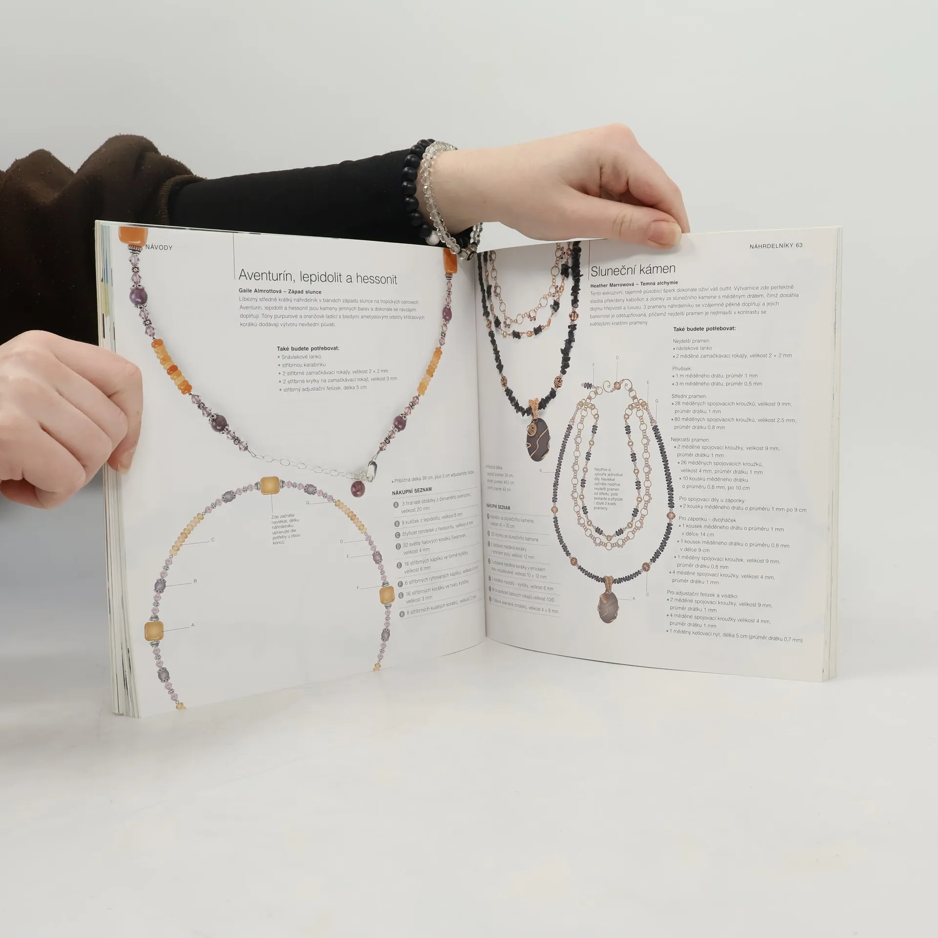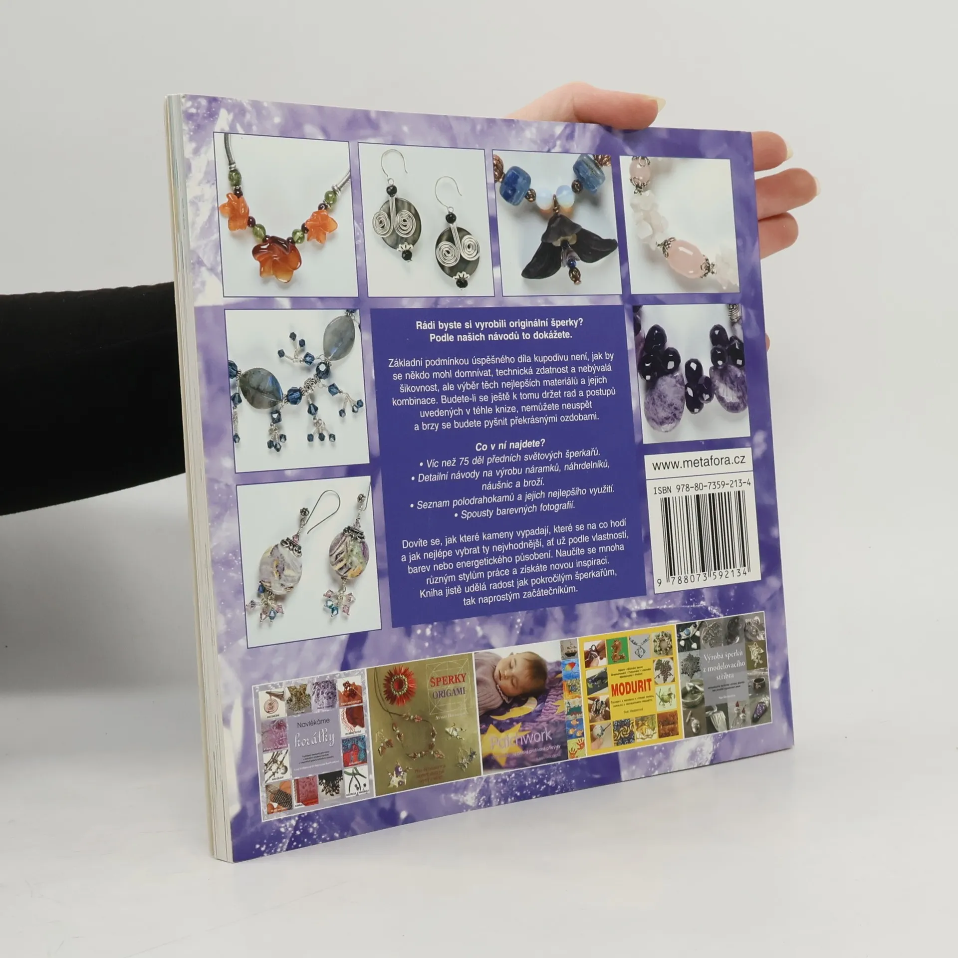 Zajímavé designérské nápady a techniky na výrobu náhrdeníků, náramků a jiných šperků Rádi byste si vyrobili originální šperky? Podle našich návodů to dokážete. Základní podmínkou úspěšného díla kupodivu není, jak by se někdo mohl domnívat, technická zdatnost a nebývalá šikovnost, ale výběr těch nejlepších materiálů a jejich kombinace. Budete-li se ještě k tomu držet rad a postupů uvedených v téhle knize, nemůžete neuspět a brzy se budete pyšnit překrásnými ozdobami. Co v ní najdete? • víc než 75 děl předních světových šperkařů • detailní návody na výrobu náramků, náhrdelníků, náušnic a broží • seznam polodrahokamů a jejich nejlepšího využití • spousty barevných fotografií Dozvíte se, jak které kameny vypadají, které se na co hodí a jak nejlépe vybrat ty nejvhodnější, ať už podle vlastností, barev nebo energetického působení. Naučíte se mnoha různým stylům práce a získáte novou inspiraci. Kniha jistě udělá radost jak pokročilým šperkařům, tak naprostým začátečníkům.