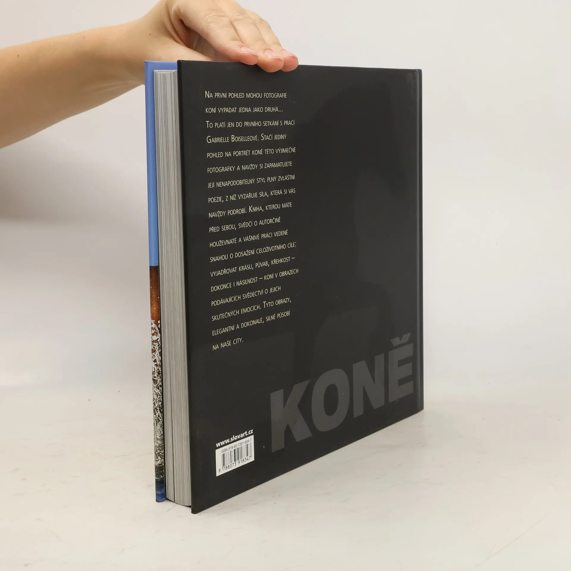 Na první pohled mohou fotografie koní vypadat jedna jako druhá... To platí jen do prvního setkání s prací Gabrielle Boiselleové. Stačí jediný pohled na portrét koně této výjimečné fotografky a navždy si zapamatujete její nenapodobitelný styl plný zvláštní poezie, z níž vyzařuje síla, která si vás navždy podrobí. Kniha, kterou máte před sebou, svědčí o autorčině houževnaté a vášnivé práci, vedené snahou o dosažení celoživotního cíle: vyjadřovat krásu, půvab, křehkost - dokonce i násilnost - koní v obrazech, podávajících svědectví o jejich skutečných emocích. Tyto obrazy, elegantní a dokonalé, silně působí na naše city. Zdroj: http://www.levneucebnice.cz/