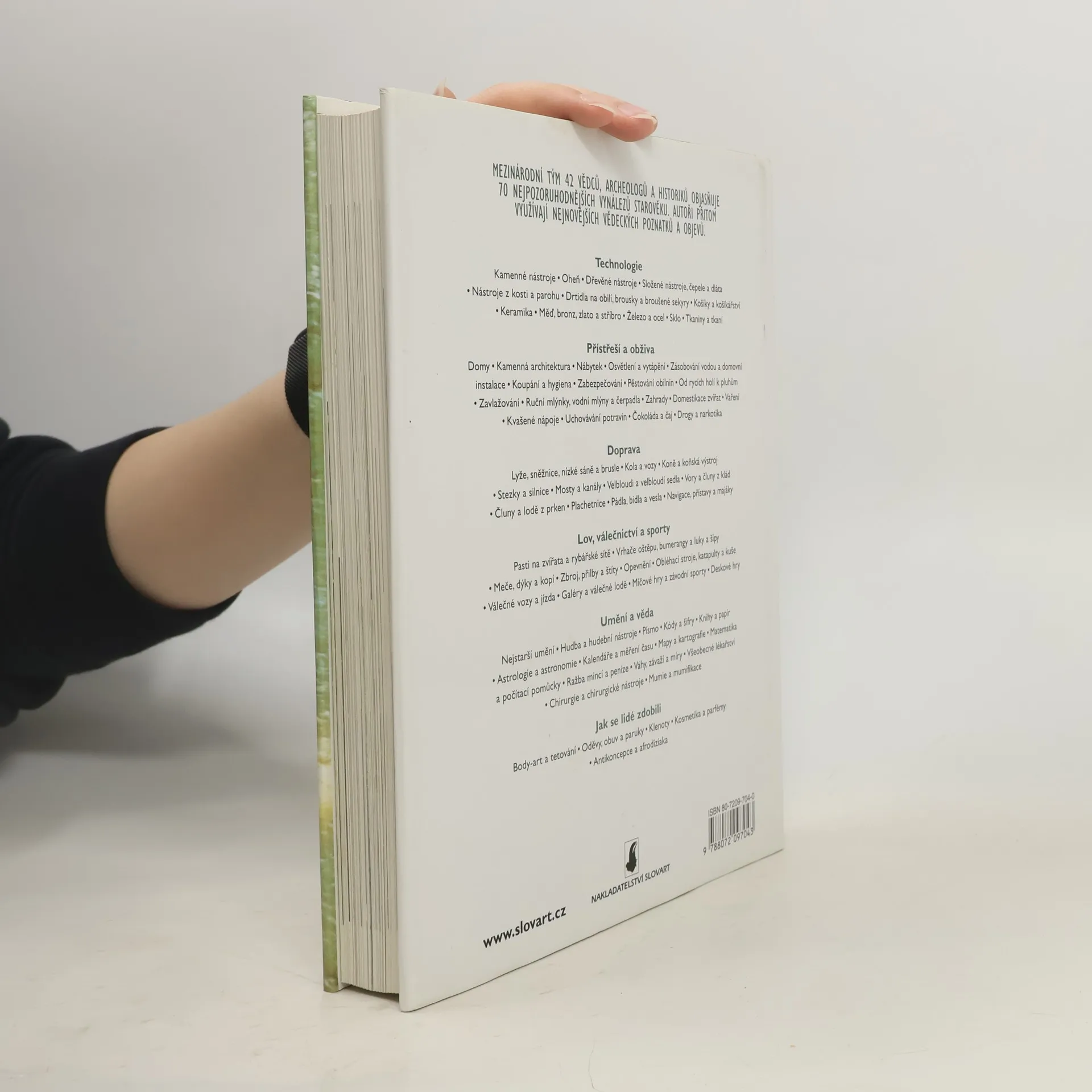 V publikaci se vydáváme na překvapující výpravu za lidskými vynálezy od prvních hrubých kamenných nástrojů našich předků, žijících před dvěma a půl miliony lety, až po objevy raného středověku. Autoři, přední odborníci v archeologii a historii, čerpají z moderní vědy a zkoumají fascinující vynálezy, počínaje základními technologiemi kamene a ohně, kosti a dřeva. Sledujeme lidi doby kamenné při otloukání pazourku a prvním kovodělcům, kteří vytvářejí ozdoby z mědi a zlata. Kniha se zaměřuje na klíčové otázky minulosti, jako je vznik zemědělství, první domy, použití kamenných oblouků, vytápění obydlí a domácí instalace. Zkoumá vliv vaření, uchovávání potravin a kvašení na starověkou kuchyni, stejně jako dopad kola a vozu na mobilitu lidí. Dále se věnuje vzniku lovu, válečnictví, sportům, umění a vědy, a také zdobení lidí. Sleduje vývoj válečných zbraní od oštěpů po meče a katapulty, zkoumá nejstarší umělecké tradice, malování těla, tetování, počátky písma a vznik matematiky, kalendářů a astronomie. Kniha, plná informací, schémat, mapek a fotografií, je jedinečnou příručkou o pozoruhodných lidských vynálezech, která svědčí o důvtipu a životaschopnosti našich předků, jež nám slouží dodnes. Celkem 554 ilustrací, z toho 484 barevných.