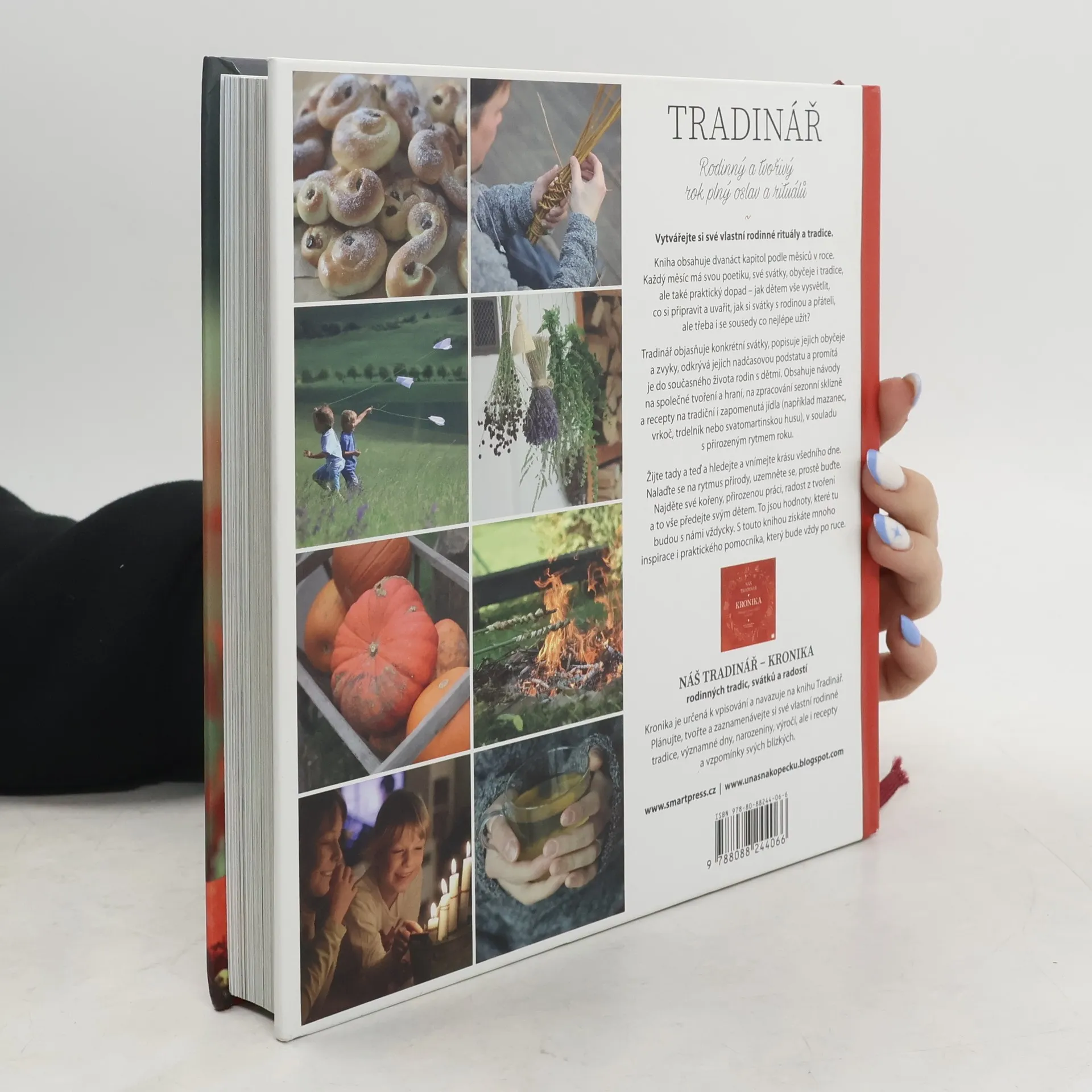 Limitovaná edice - bílá obálka. Kniha obsahuje dvanáct kapitol podle měsíců v roce. Každý měsíc má svou poetiku, své svátky a rituály, ale i praktický dopad - jak vše dětem vysvětlit, včas si připravit, na nic nezapomenout? Vytvoříte si své vlastní rodinné rituály a tradiční svátky si společně s rodinou, sousedy a přáteli pěkně užijete. Rodina - Tradice - Rok - Rytmus - Příroda - Rituály - Vaření - Tvoření - Zahrada Všichni rádi slaví. V listopadu pečeme husy, Vánoce slavíme nejraději, na Velikonoce si obarvíme vajíčka. Víme ale proč? Filipojakubská či svatojánská noc nám znějí tajemně a magicky. Kniha vysvětluje konkrétní svátky, objevuje souvislosti, popisuje symboly a významy a promítá je do současného života. Obsahuje návody na jednoduché tvoření a recepty na tradiční i zapomenutá jídla (např. svatomartinské rohlíčky či šípkový čaj). Vychází z tradic a vrací rodinnému, ale i společenskému životu prapůvodní podstatu, kdy se žilo ve spojení s přírodními cykly a ve větší pospolitosti. Mnoho svátků a obyčejů se slaví společně - v obci, vesnici, komunitě, mezi sousedy. Nalaďte se na rytmus přírody, uzemněte se, prostě buďte. Najděte své kořeny, přirozenou práci, radost z tvoření a to vše předejte svým dětem. Jsou to totiž hodnoty, které tu budou s námi (snad) vždycky. Kniha je vhodná pro maminky, tatínky, pro mateřská centra, školky, školy, babičky a dědečky. Rodinný a tvořivý rok plný oslav a rituálů.