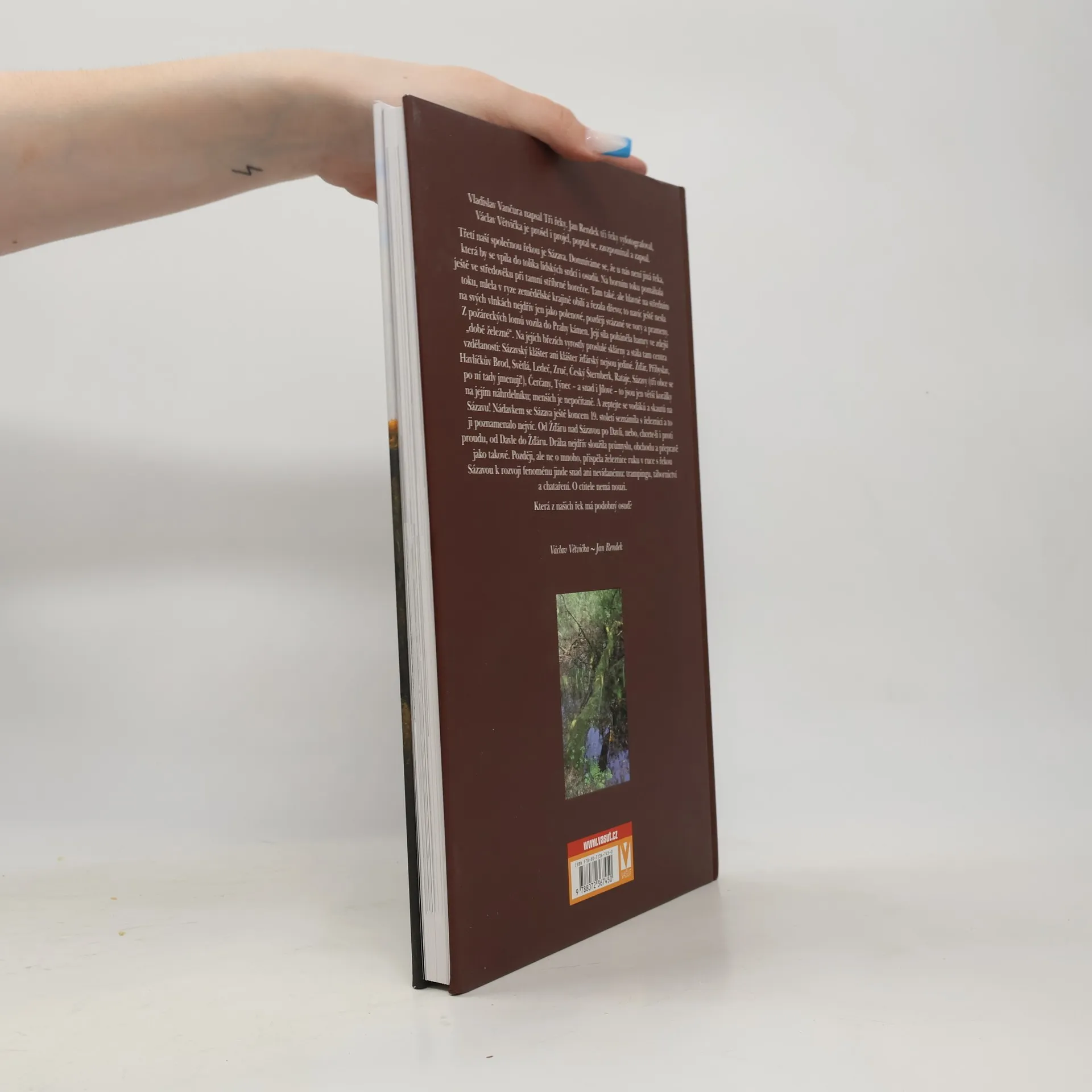 Vladislav Vančura napsal Tři řeky, Jan Rendek je vyfotografoval a Václav Větvička je prošel, projel, zavzpomínal a zapsal. Třetí společnou řekou je Sázava, která se vpila do mnoha lidských srdcí a osudů. Na horním toku pomáhala během středověké stříbrné horečky, zatímco na středním toku mlela obilí a řezala dřevo, které nesla na svých vlnkách, nejprve jako polena a později ve vory. Z požáreckých lomů vozila do Prahy kámen a její síla poháněla hamry v „době železné“. Na jejích březích vyrostly proslulé sklárny a vzdělanostní centra, jako Sázavský a Žďárský klášter. Města jako Žďár, Přibyslav, Havlíčkův Brod, Světlá a další jsou jen větší korálky na jejím náhrdelníku. Sázava se také na konci 19. století seznámila s železnicí, což ji významně poznamenalo. Dráha sloužila průmyslu a obchodu, později přispěla k rozvoji trampingu, tábornictví a chataření. Sázava má mnoho ctitelů a její osud je jedinečný. Která z našich řek se může pochlubit podobným příběhem?