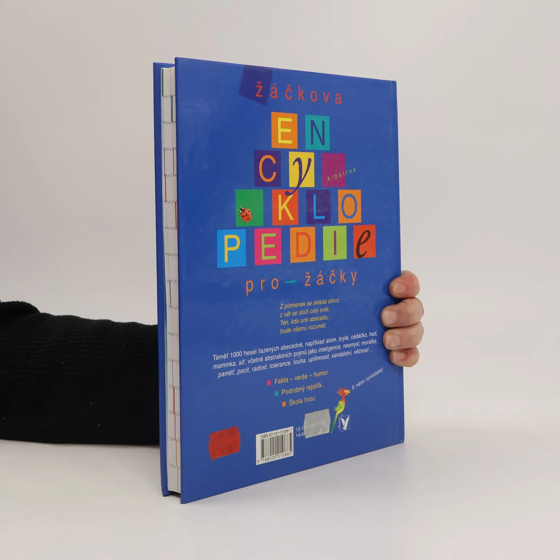 Abecedně uspořádaná všeobecná encyklopedie, v níž děti najdou téměř tisíc hesel, spoustu obrázků a krátkých básniček. Nechybí ani pojmy abstraktní a filozofické (spravedlnost, náboženství, láska, demokracie). Publikace by měla přispět k obohacení slovní zásoby, rozšíření znalostí, ale i k osvojení abecedy a k tomu, aby dítě umělo pracovat s rejstříkem. Některé pojmy budou dětem jasné hned, u jiných budou patrně hledat bližší vysvětlení u rodičů. Knížka je určena dětem od 6 let.... celý text
