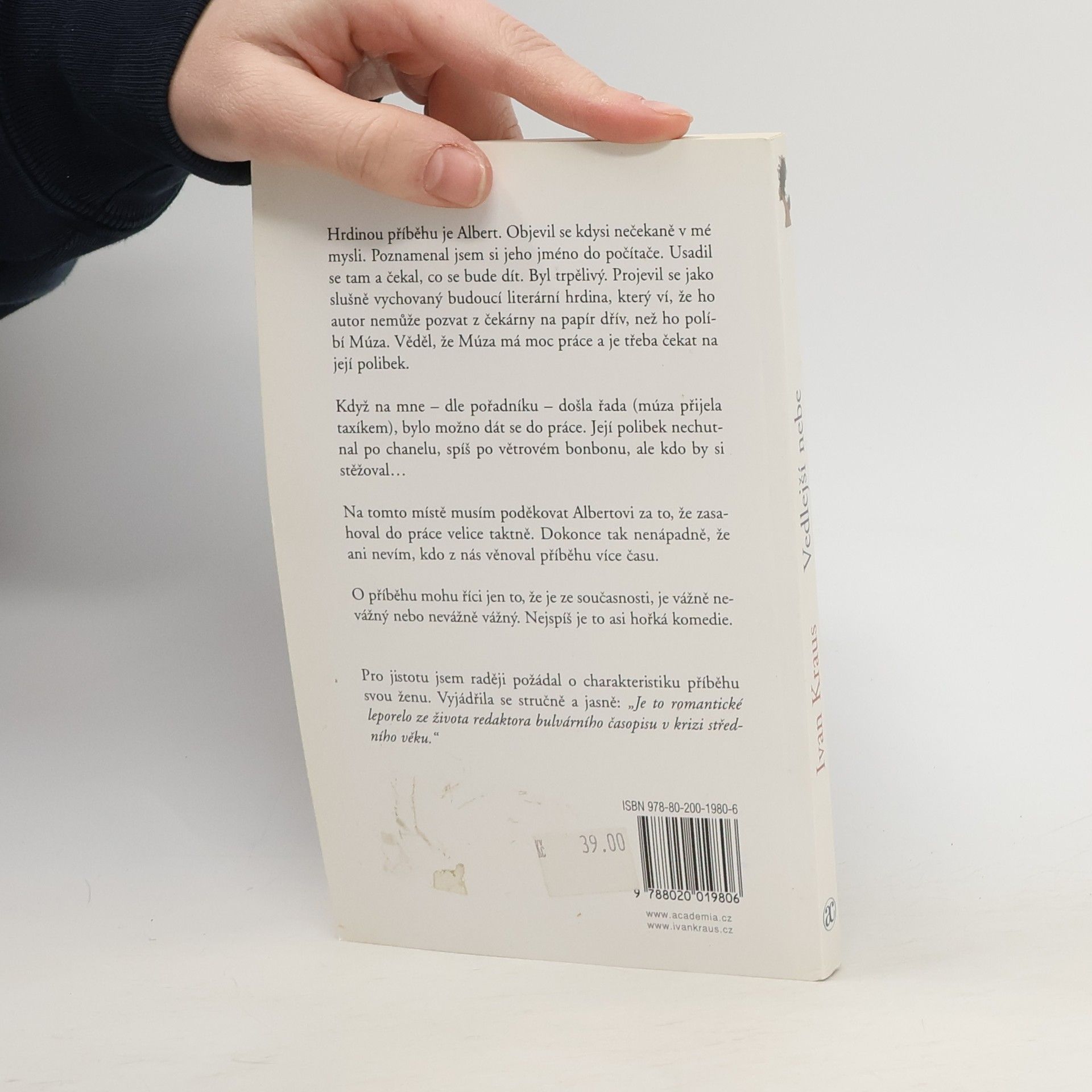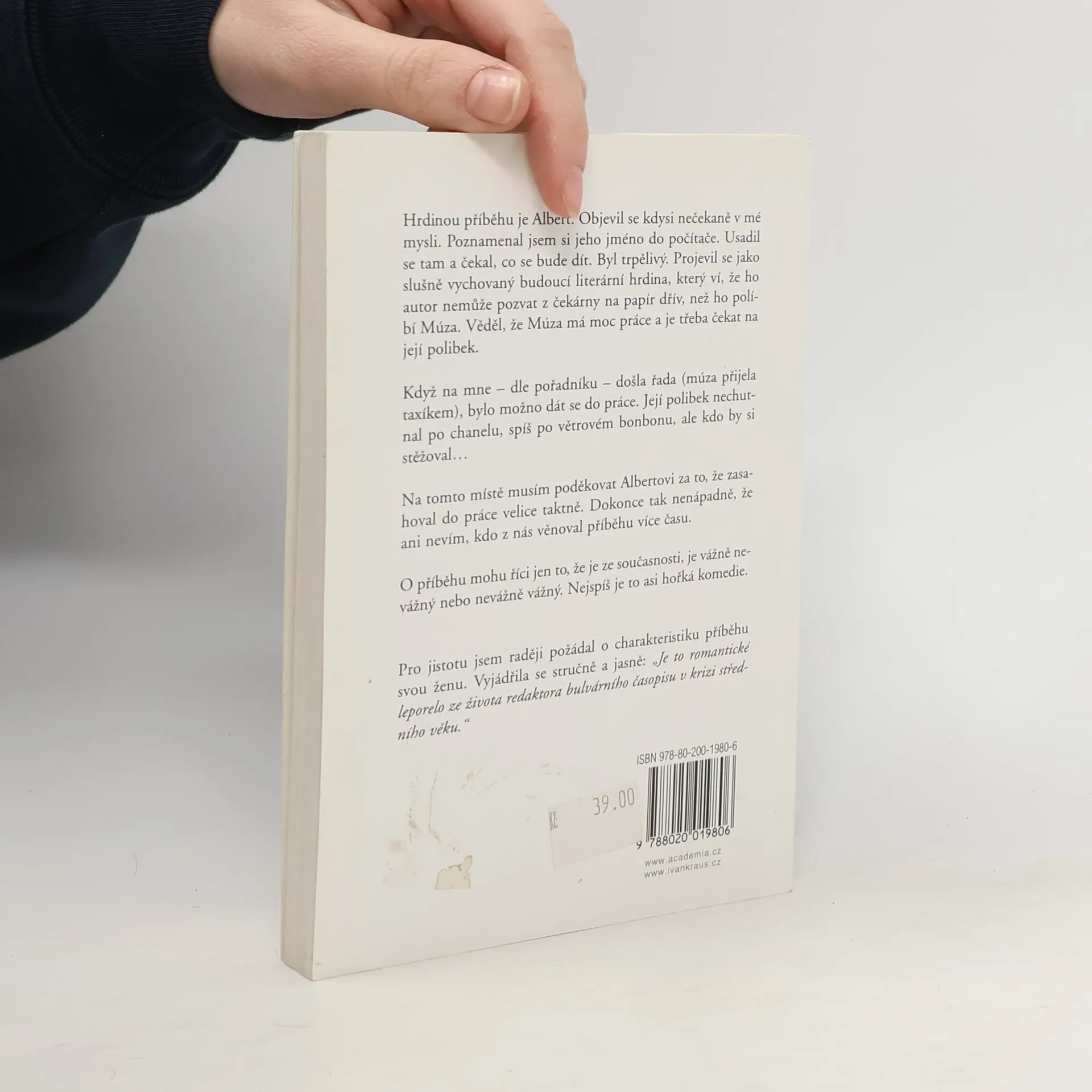 Hrdinou příběhu je Albert. Objevil se kdysi nečekaně v mé mysli. Poznamenal jsem si jeho jméno do počítače. Usadil se tam a čekal, co se bude dít. Byl trpělivý. Projevil se jako slušně vychovaný budoucí literární hrdina, který ví, že ho autor nemůže pozvat z čekárny na papír dřív, než ho políbí Múza. Věděl, že Múza má moc práce a je třeba čekat na její polibek. Když na mne - dle pořadníku - došla řada, /múza přijela taxíkem/, bylo možno se dát do práce. Její polibek nechutnal po Chanelu, spíš po větrovém bonbonu, ale kdo by si stěžoval… Na tomto místě musím poděkovat Albertovi, za to, že zasahoval do práce velice taktně. Dokonce tak nenápadně, že ani nevím, kdo z nás věnoval příběhu více času. O příběhu mohu říci jen to, že je ze současnosti, je vážně nevážný nebo nevážně vážný. Nejspíš je to asi hořká komedie. Pro jistotu jsem raději požádal o charakteristiku příběhu svou ženu. Vyjádřila se stručně a jasně: "Je to leporelo ze života redaktora bulvárního časopisu v krizi středního věku. Romantická komedie."