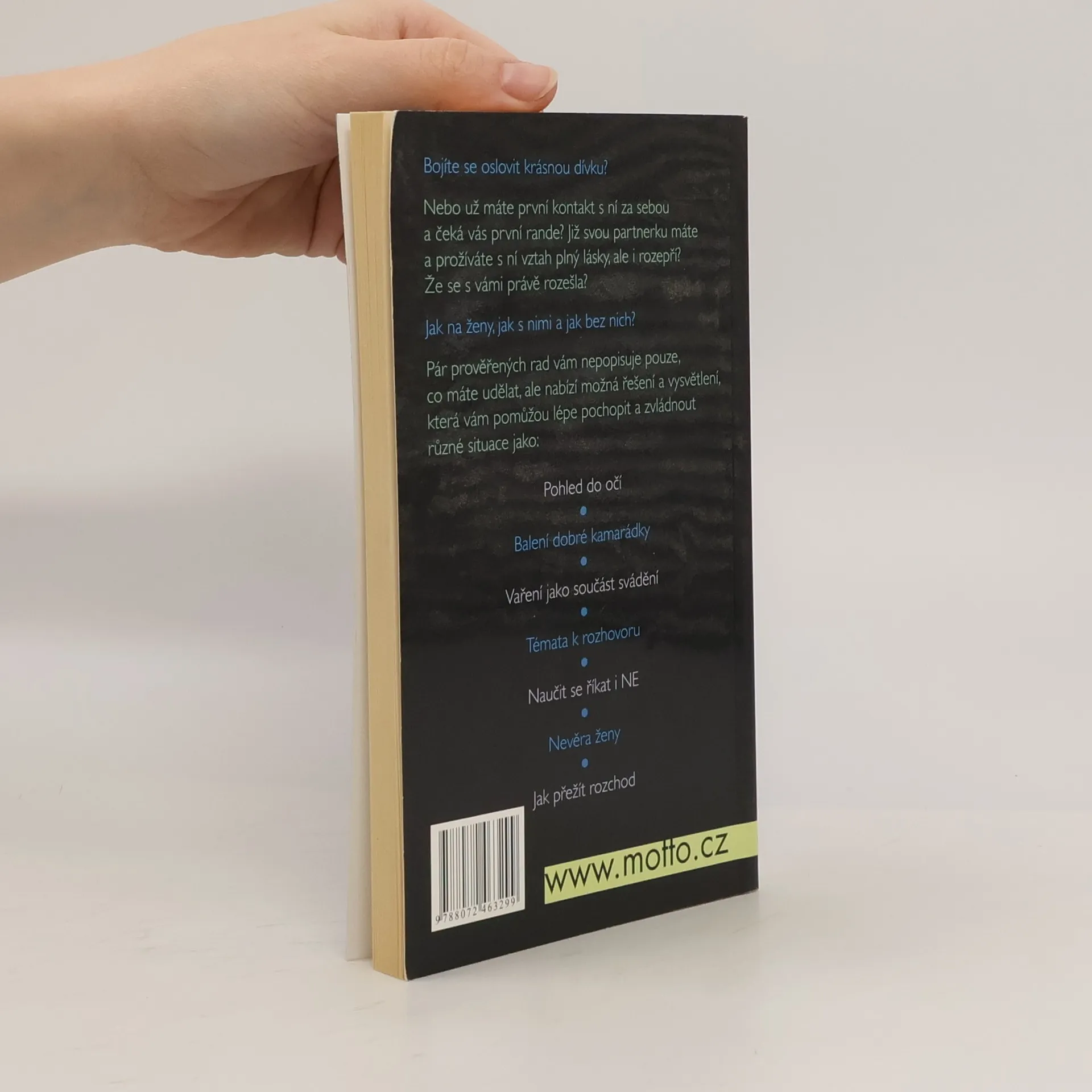 Jak na ženy, jak s nimi a jak bez nich. Bojíte se oslovit krásnou dívku? Nebo už máte první kontakt s ní za sebou a čeká vás první rande? Již svou partnerku máte a prožíváte s ní vztah plný lásky, ale i rozepří? Že se s vámi právě rozešla? Pár prověřených rad vám nepopisuje pouze co máte udělat, ale nabízí možná řešení a vysvětlení, která vám pomohou lépe pochopit a zvládnout různé situace jako: pohled do očí, balení dobré kamarádky, témata k rozhovoru, nevěra ženy…