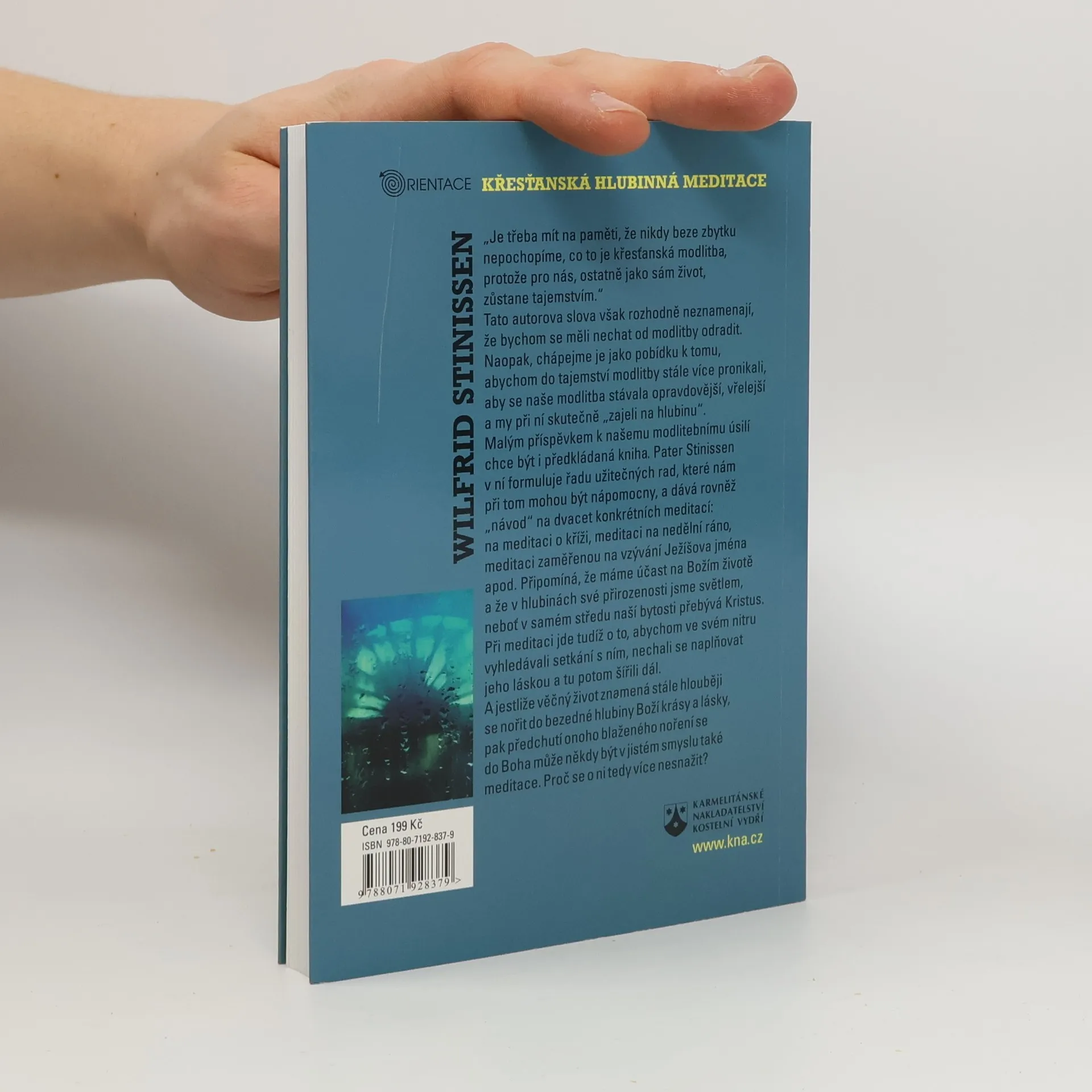 „Je třeba mít na paměti, že nikdy beze zbytku nepochopíme, co to je křesťanská modlitba, protože pro nás, ostatně jako sám život, zůstane tajemstvím.“ Tato autorova slova však rozhodně neznamenají, že bychom se měli nechat od modlitby odradit. Naopak, chápejme je jako pobídku k tomu, abychom do tajemství modlitby stále více pronikali, aby se naše modlitba stávala opravdovější, vřelejší a my při ní skutečně „zajeli na hlubinu“. Malým příspěvkem k našemu modlitebnímu úsilí chce být i předkládaná kniha. Wilfrid Stinissen v ní formuluje řadu užitečných rad, které nám při tom mohou být nápomocny, a dává rovněž „návod“ na dvacet konkrétních meditací: na meditaci o kříži, meditaci na nedělní ráno, meditaci zaměřenou na vzývání Ježíšova jména apod. Připomíná, že máme účast na Božím životě a že v hlubinách své přirozenosti jsme světlem, neboť v samém středu naší bytosti přebývá Kristus. Při meditaci jde tudíž o to, abychom ve svém nitru vyhledávali setkání s ním, nechali se naplňovat jeho láskou a tu potom šířili dál. A jestliže věčný život znamená stále hlouběji se nořit do bezedné hlubiny Boží krásy a lásky, pak předchutí onoho blaženého noření se do Boha může někdy být v jistém smyslu také meditace. Proč se o ni tedy více nesnažit?