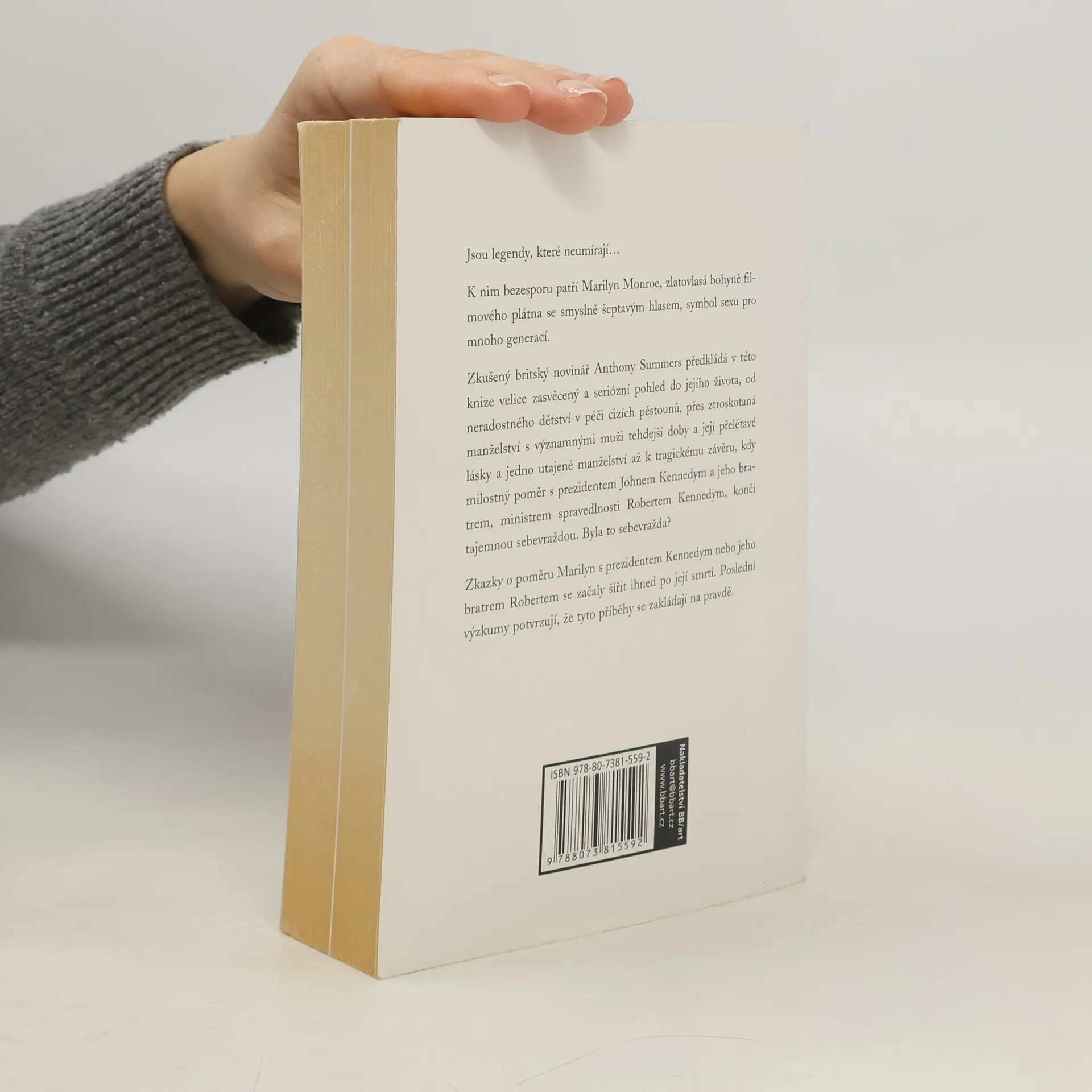 Jsou legendy, které neumírají... K nim bezesporu patří Marilon Monroe, zlatovlasá bohyně filmového plátna se smyslně šeptavým hlasem, symbol sexu pro mnoho generací. Zkušený britský novinář Anthony Summers předkládá v této knize velice zasvěcený a seriózní pohled do jejího života, od neradostného dětství v péči cizích pěstounů, přes ztroskotaná manželství s významnými muži tehdejší doby a její přelétavé lásky a jedno utajené manželství až k tragickému závěru, kdy milostný poměr s prezidentem Johnem Kennedym a jeho bratrem, ministrem spravedlnosti Robertem Kennedym, končí tajemnou sebevraždou. Byla to sebevražda? Zkazky o poměru Marilyn s prezidentem Kennedym nebo jeho bratrem Robertem se začaly šířit ihned po její smrti. Poslední výzkumy potvrzují, že tyto příběhy se zakládají na pravdě.