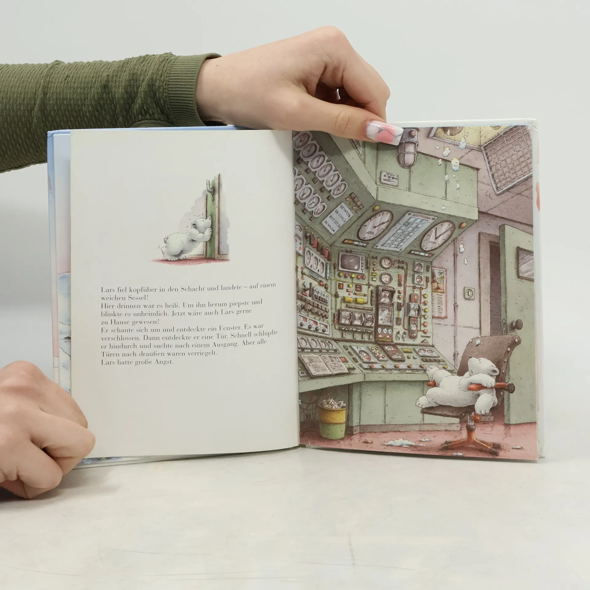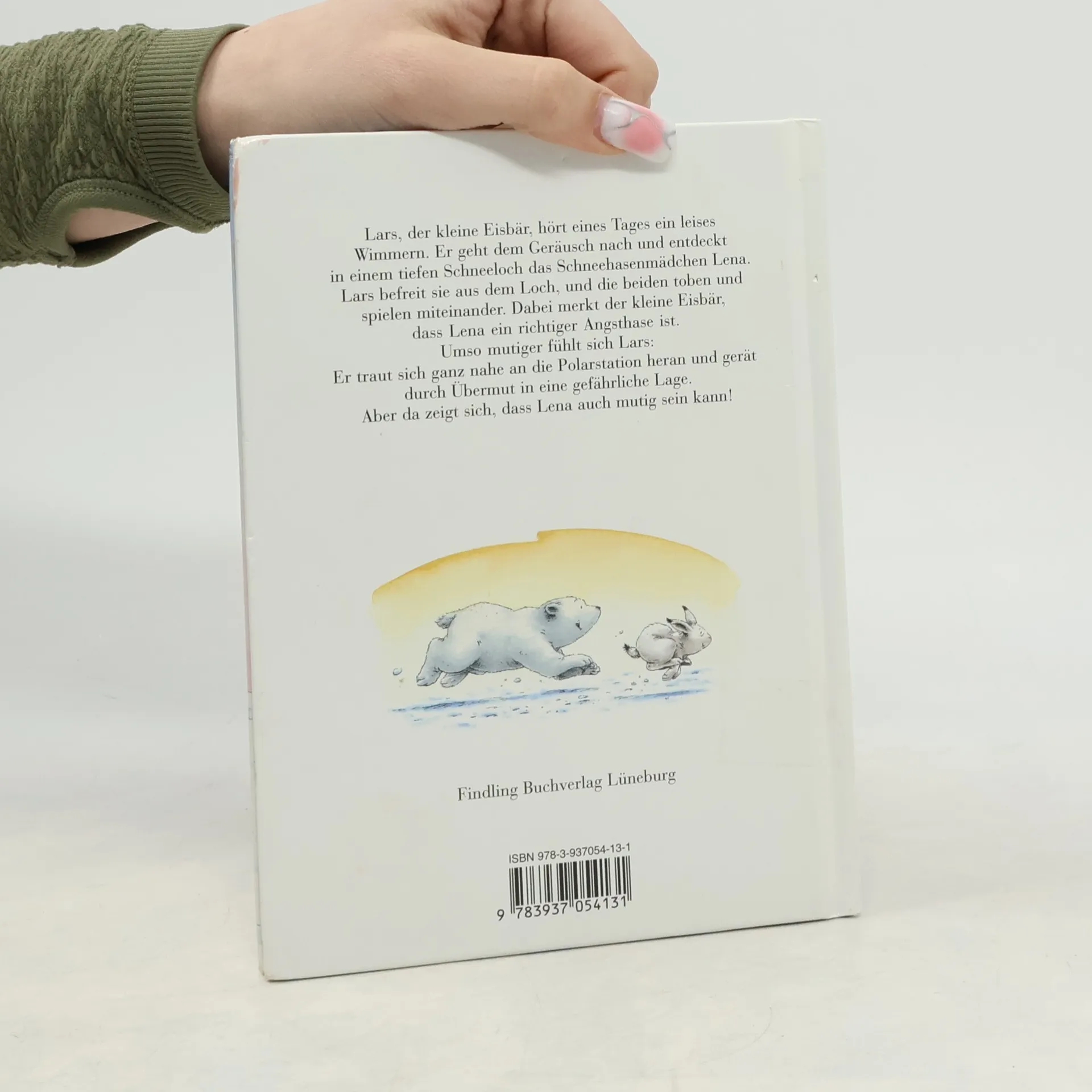 Lars, der kleine Eisbär, hört eines Tages ein leises Wimmern. Er geht dem Geräusch nach und entdeckt in einem tiefen Schneeloch das Schneehasenmädchen Lena. Lars befreit sie aus dem Loch, und die beiden toben und spielen miteinander. Dabei merkt der kleine Eisbär, dass Lena ein richtiger Angsthase ist. Umso mutiger fühlt sich Lars: Er traut sich ganz nahe an die Polarstation heran und gerät durch Übermut in eine gefährliche Lage. Aber da zeigt sich, dass Lena auch mutig sein kann!