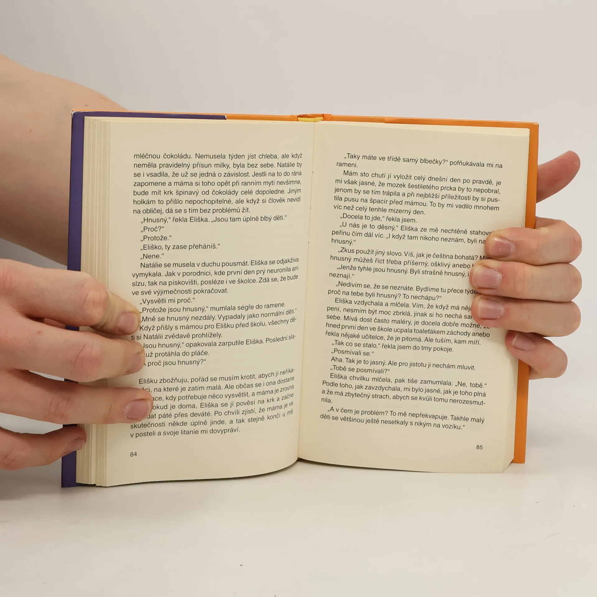 Román, inspirovaný autentickým příběhem vážně tělesně postižené středoškolské studentky, poukazuje z pohledu šestnáctileté ochrnuté dívky a její rodiny na situace, kterým musí handicapovaní lidé a jejich okolí v každodenním životě čelit. Hrdinka, která se narodila jako oběť dětské mozkové mrtvice, žije se dvěma sourozenci jen s matkou, protože otec se nedokázal vyrovnat s jejím postižením a od rodiny odešel. Fyzicky je čtyřiadvacet hodin denně odkázaná na cizí pomoc, s okolím komunikuje přes počítač, živě a s osobitým humorem sleduje veškeré dění, ale u cizích lidí budí dojem, že je postižená i mentálně. Dívka je ale nadprůměrně inteligentní a touží studovat, proto se rodina stěhuje do města, kde existuje integrovaná škola a ona si musí zvykat na nové prostředí a její spolužáci na ni. Na svou situaci pohlíží bez sentimentality, velice všímavě zaznamenává rozpačité reakce zdravých lidí kolem sebe a snaží se jim pomoci překonat nemístný ostych a rozpaky. Ve druhém plánu svého příběhu se autorka soustředila i na rodinu své hrdinky, na fyzickou i psychickou zátěž, kterou taková ustavičná péče pro všechny znamená, kterou ale zcela kompenzuje vzájemné porozumění, láska a soudržnost.