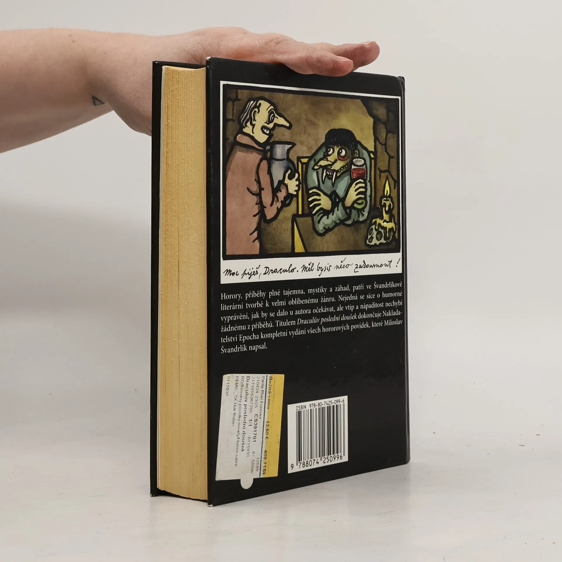 Horory, příběhy plné tajemna, mystiky a záhad, patří ve Švandrlíkově literární tvorbě k velmi oblíbenému žánru. Nejedná se sice o humorné vyprávění, jak by se dalo u autora očekávat, ale vtip a nápaditost, jež od něj čtenáři očekávají, nechybí žádnému z více než šedesáti příběhů v této knize. Titulem DRACULŮV POSLEDNÍ DOUŠEK dokončuje Nakladatelství Epocha kompletní vydání všech hororových povídek, které Miloslav Švandrlík napsal.