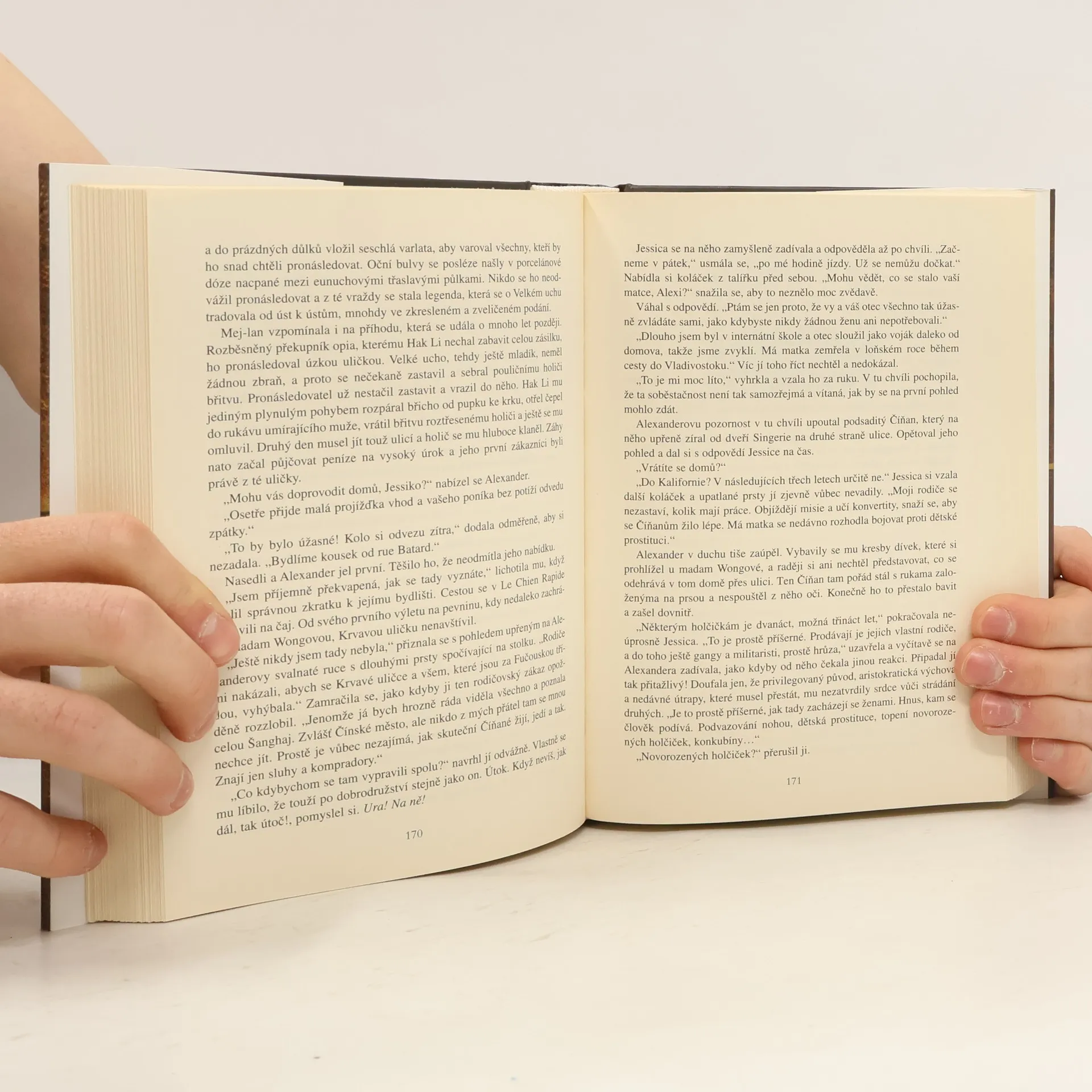 Dramatický román v historických kulisách z počátku 20. století zachycuje příběh ruského šlechtice, prchajícího po vítězství Říjnové revoluce do Číny a v krutém světě násilí, převratů a podsvětních intrik budujícího svou novou existenci. Mladý Alexander Karlov prchá se svým otcem po vítězství bolševiků z Ruska a po dramatické cestě přicházejí do Šanghaje, kde se v této bouřlivé době proti sobě staví v boji o nadvládu čínské triády, Čankajškův Kuomintang a Maova Komunistická strana Číny, a které je v té době jedním z nejrušnějších měst na světě. Nové dojmy mladý muž postupně vstřebává díky náklonnosti majitelky šanghajského nevěstince, která ho seznamuje s místní kulturou, zvyky a hlavně se spletitými a zrádnými společenskými poměry a důležitými lidmi. Hrdina pronásleduje totiž v Číně únosce své sestry, primitivního a brutálního bolševického funkcionáře a doufá, že se nejen pomstí, ale sestru najde. K tomu bez výčitek využívá i svých spojenců v podsvětí a nakonec se mu jeho předsevzetí s jejich pomocí splní. Tím se částečně odpoutá od minulosti a svou budoucnost spojuje se Šanghají, plnou nebezpečí, barev a křiklavých kontrastů.