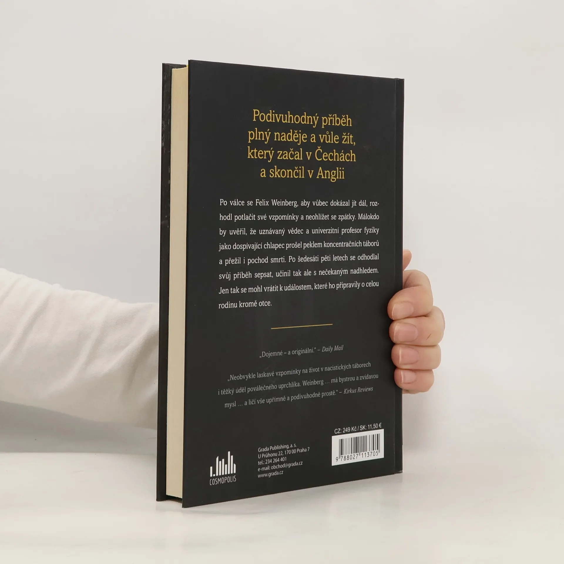 Válečné vzpomínky židovského chlapce z Čech Po válce se Felix Weinberg, aby vůbec dokázal jít dál, rozhodl potlačit své vzpomínky a neohlížet se zpátky. Málokdo by uvěřil, že uznávaný vědec a univerzitní profesor fyziky jako dospívající chlapec prošel peklem koncentračních táborů a přežil i pochod smrti. Po šedesáti pěti letech se odhodlal svůj příběh sepsat, učinil tak ale s nečekaným nadhledem. Jen tak se mohl vrátit k událostem, které ho připravily o milovanou maminku, malého bratra i všechny další příbuzné. Zůstal mu jen otec, který ještě před okupací Československa uvízl v Anglii. Spolu si tam nakonec vybudovali nový život. Měl jsem velmi šťastné dětství. Skončilo ovšem příliš brzy a příliš krutě vinou Adolfa Hitlera, já ovšem věřím, že právě na dětství záleží nejvíc. Vzpomínky na něj vytvářejí v mysli jakousi ulitu bezpečí a radosti, do níž se může člověk v dobách utrpení stáhnout. Moje ulita byla plná krásných vzpomínek a jistoty, že mě mí blízcí zbožňovali a milovali.
