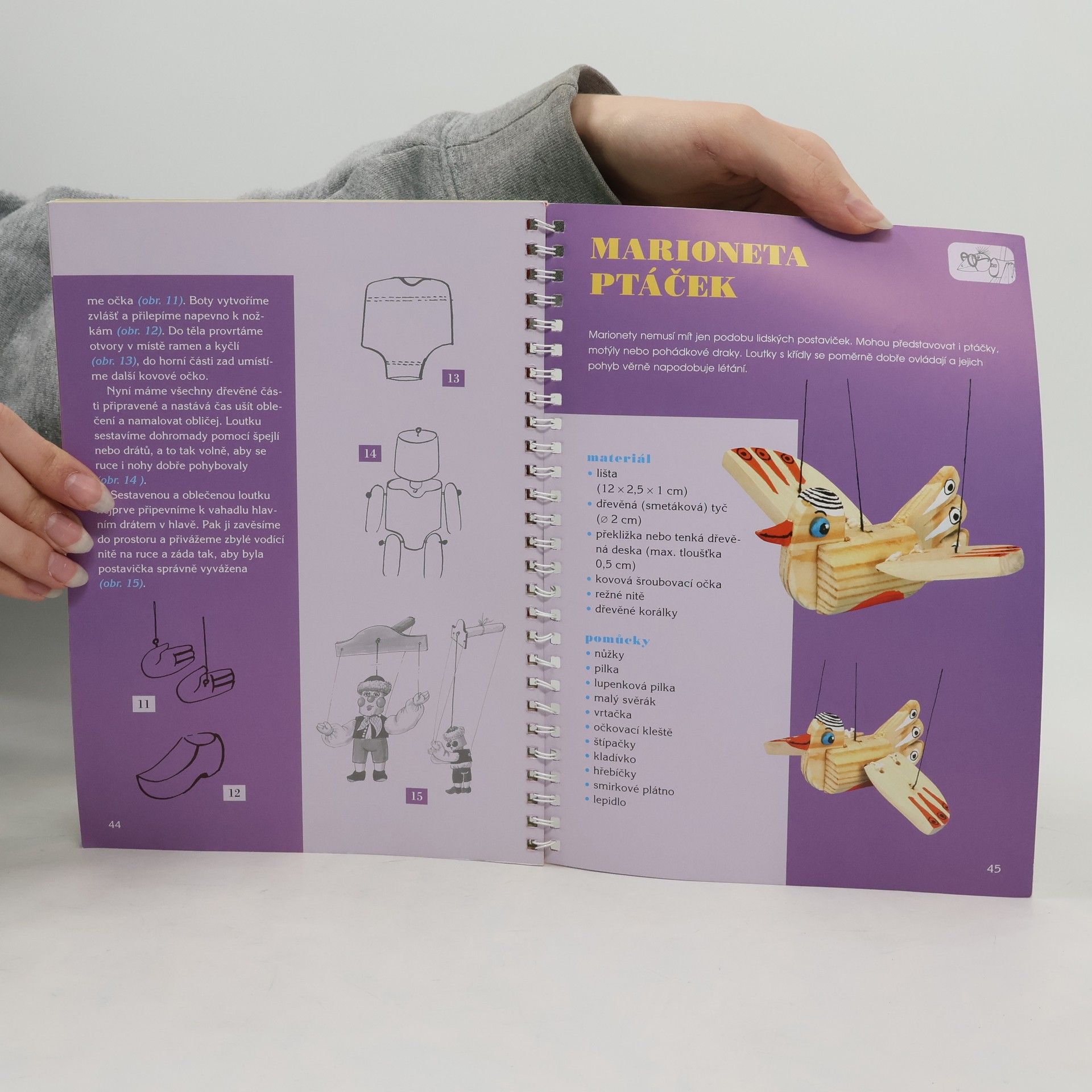 Návody na výrobu různých typů loutek (marionety, maňásci, prsťáčci, tančící loutky a další). Vhodné jako inspirace pro starší děti, mládež i dospělé. Pěkně graficky a přehledně zpracovaná kniha. Každý typ loutky je doplněn stručnou historií svého vývoje. Na začátku knihy je popsána historie loutkoherectví a loutek. Publikace není doplněna žádným střihovým materiálem, jen jednoduchými náčrty, takže poslouží spíše jako inspirace.
