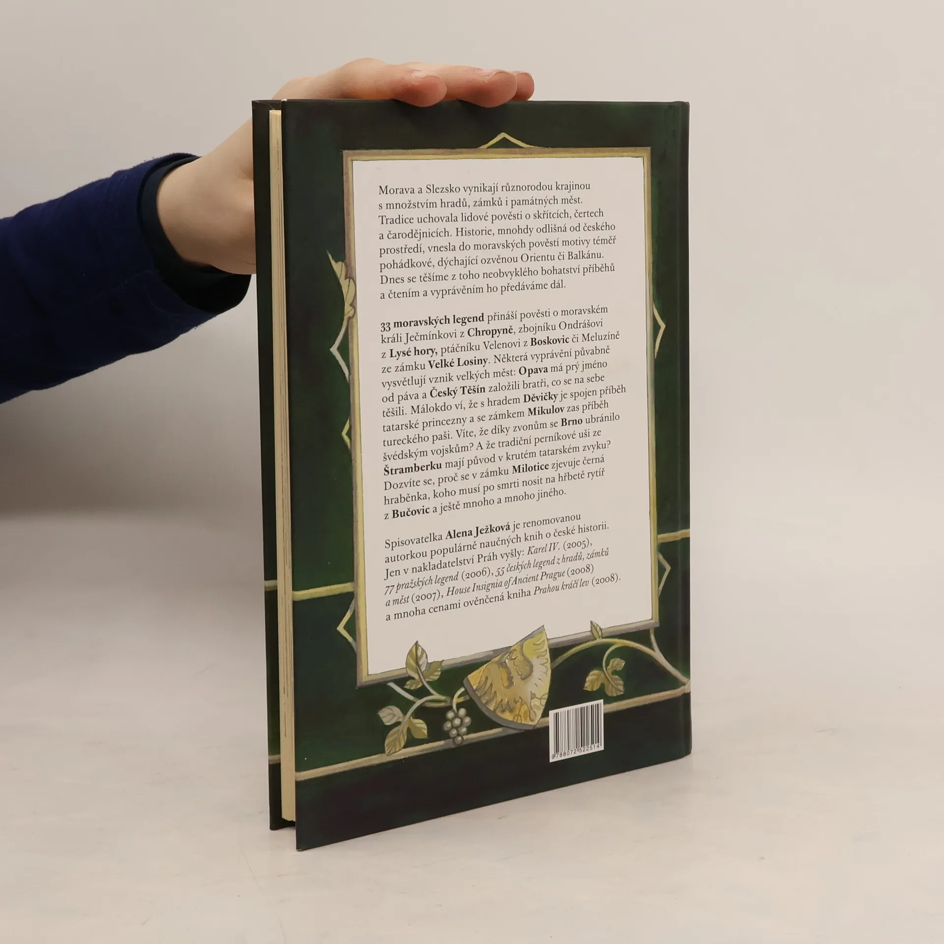 33 moravských legend přináší pověsti o moravském králi Ječmínkovi z Chropyně, zbojníku Ondrášovi z Lysé hory, ptáčníku Velenovi z Boskovic či Meluzíně ze zámku Velké Losiny. Některá vyprávění půvabně vysvětlují vznik velkých měst: