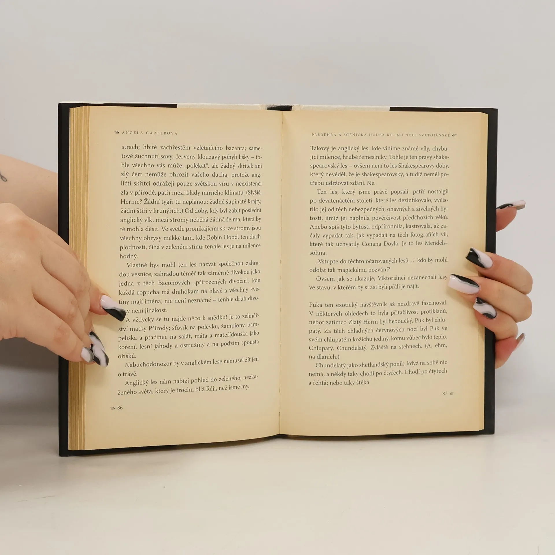 Nezáleží na tom, jestli si postavy vypůjčíme z historie, z mýtů, z vlastního života, ze světa fantazie anebo od kolegů a přátel, důležité je, co s nimi následně uděláme. Angela Carter s originalitou sobě vlastní využívá všech zmíněných možností, aby vytvořila jakousi literární féerii, nasycenou postavami přesných charakterů a plných životů. Ať už se jedná o milenku Charlese Baudelaira, Puka ze Shakespearova Snu noci svatojánské, prostitutku, jež našla mezi Indiány dočasné útočiště a dočasné odpovědi na dosud nezodpovězené otázky, Edgara Allana Poea anebo křehkou dívku, jež nade vše ctí svého otce, ale skutečně miluje pouze své holuby - pokaždé čtenář nahlédne do rozvírající se lastury postupného odhalování lidského osudu, jenž stojí za to, aby se stal literaturou.