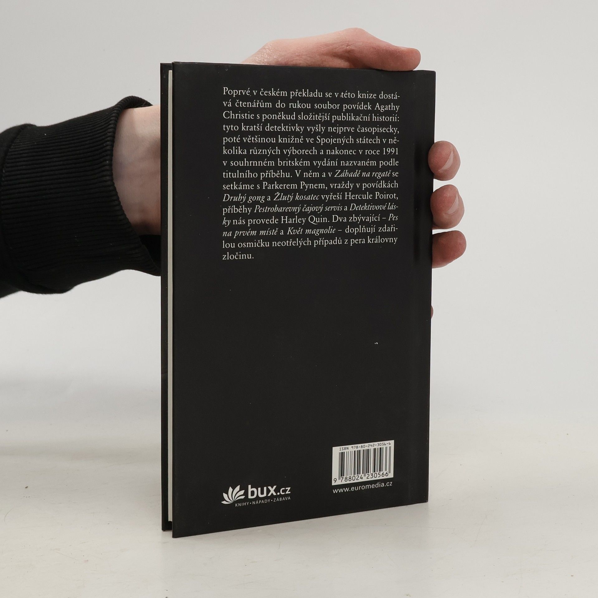 Soubor vydaný ve velké Británii v roce 1991 zahrnuje povídky, které do té doby vyšly knižně pouze ve Spojených státech. V titulním příběhu a v Záhadě na regatě se setkáme s Parkerem Pynem, v povídkách Druhý gong a Žlutý kosatec s Herculem Poirotem, v příbězích nazvaných Pestrobarevný čajový servis a Detektivové lásky pak s Harleym Quinem. Dva zbývající – Pes na prvém místě a Květ magnolie – doplňují zdařilou osmičku neotřelých případů z pera královny detektivek.