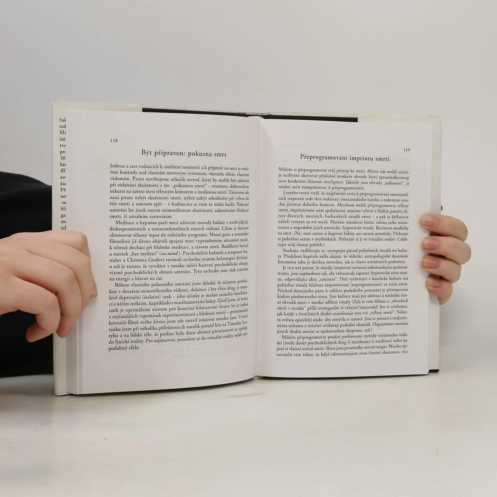 Tváří tvář smrtelné nemoci si Timothy Leary položil otázku, jak člověk vlastně funguje a kdy nastává okamžik jeho konce. Zaměřil se na moment, kdy se život náhle převrací v zánik. Autor se snaží předložit svou vlastní bizarní metodu plánované smrti. Nebát se smrti, ale přijmout ji jako součást své existence.