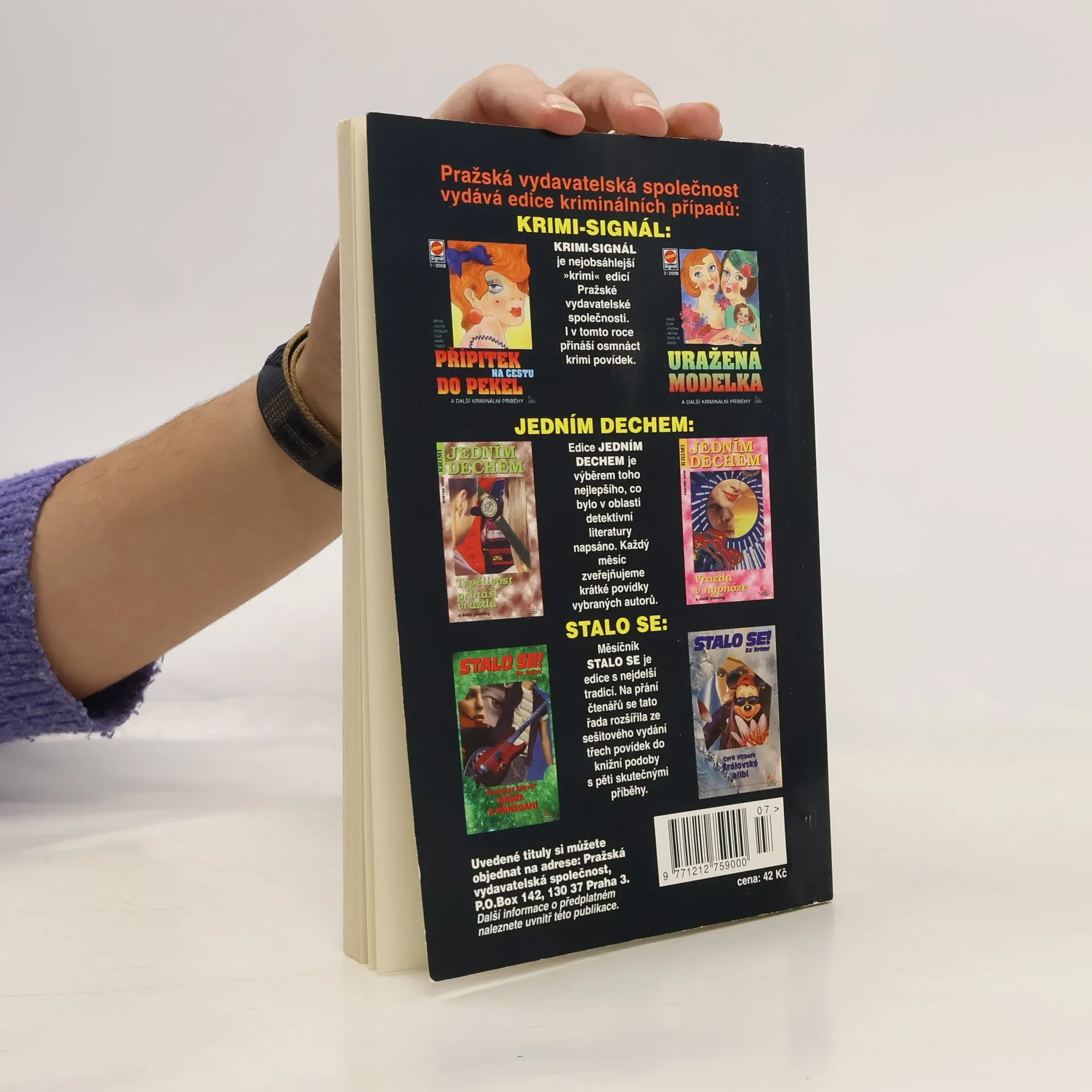 Každý měsíc volné zpracování několika skutečných kriminálních případů, které zneklidnily veřejnost. Součástí publikace je i křížovka o detektivní literatuře se soutěží o ceny z produkce Pražské vydavatelské společnosti.