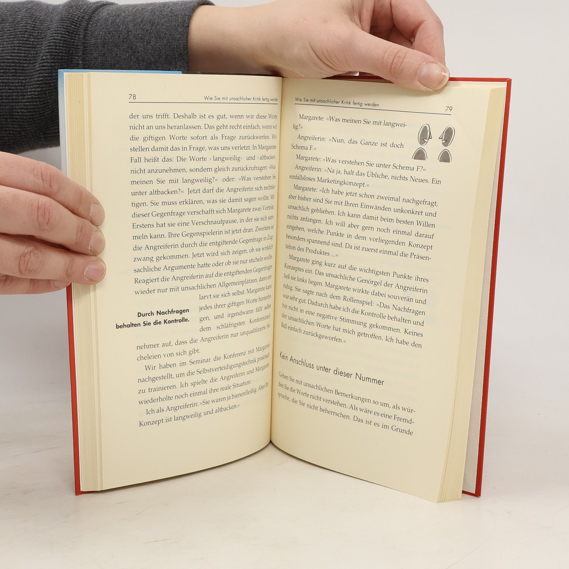 Ein Angriff mit Worten kann ebenso verletzend sein wie ein Schlag ins Gesicht. Die meisten Menschen sind dann erst einmal sprachlos, später fällt ihnen vielleicht ein, was sie hätten sagen können. Oder sie schießen spontan zurück, oft mit einer noch härteren Retourkutsche. Dabei kommen sie schnell in Teufels Küche, denn aus einer dummen Bemerkung entwickelt sich leicht ein handfester Konflikt. Barbara Berckhan stellt in ihrem neuen Buch 12 Strategien vor, wie wir in alltäglichen Situationen etwas intelligenter Kontra geben können. Sie erfahren u.a., wie Sie Angriffe einfach an sich abprallen lassen können, wie Sie den Angreifer verwirren oder ins Leere laufen lassen können, wie sie unsachliche Kritik entgiften können. Zusätzlich enthält das Buch ein Trainingsprogramm, mit dem Sie Ihre persönliche Schlagfertigkeit verbessern werden.