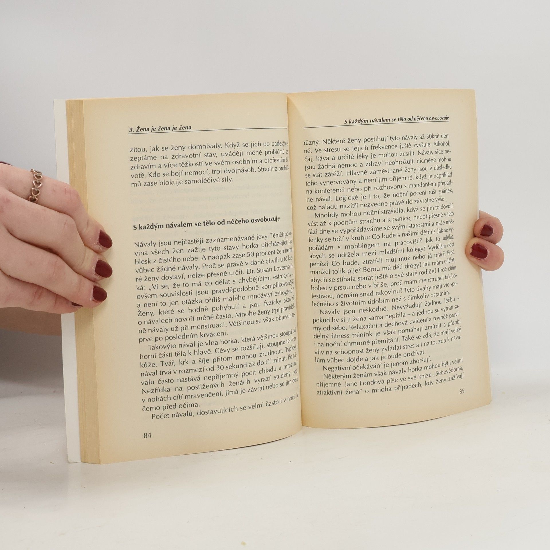 Autorka se vypořádává s negativním obrazem menopauzy. Erudovaně a kompetentně vysvětluje přednosti i nedostatky hormonální léčby, dělí se o vyzkoušené rady z přírodního léčitelství a ukazuje, jak krásný může být život i po padesátce. Společně s ní se můžeme vydat na objevnou expedici. Kdo nemá odvahu, nechť dál chodí pro radu k lékařům a do lékáren a zařizuje se podle toho, co mu řeknou.