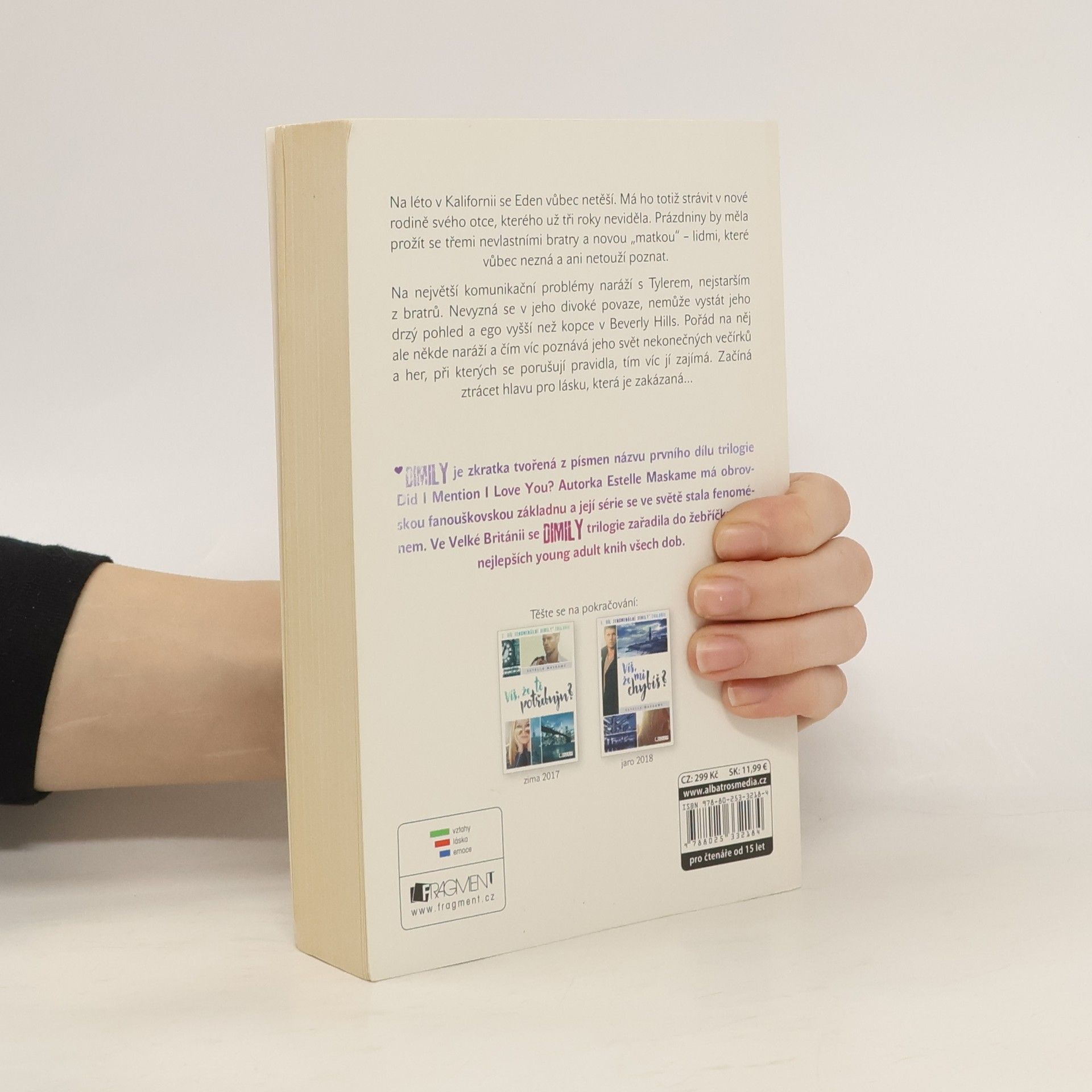 Na léto v Kalifornii se Eden vůbec netěší. Strávit ho má totiž v nové rodině svého otce, kterého už tři roky neviděla. Prázdniny by měla prožít s třemi nevlastními bratry a novou „matkou“ – lidmi, které vůbec nezná a ani netouží poznat. Na největší komunikační problémy naráží s Tylerem, nejstarším z bratrů. Nevyzná se v jeho divoké povaze, nemůže vystát jeho drzý pohled a ego vyšší než kopce v Beverly Hills. Pořád na něj ale někde naráží a čím víc poznává jeho svět nekonečných večírků a her, při kterých se porušují pravidla, tím víc jí zajímá. Začíná ztrácet hlavu pro lásku, která je zakázaná… DIMILY je zkratka tvořená z prvních písmen názvu prvního dílu trilogie Did I Mention I Love You? Autorka Estelle Maskameová má obrovskou fanouškovskou základnu a její série se ve světě stala fenoménem. Ve Velké Británii se DIMILY trilogie zařadila do žebříčku pěti nejlepších young adult knih všech dob.