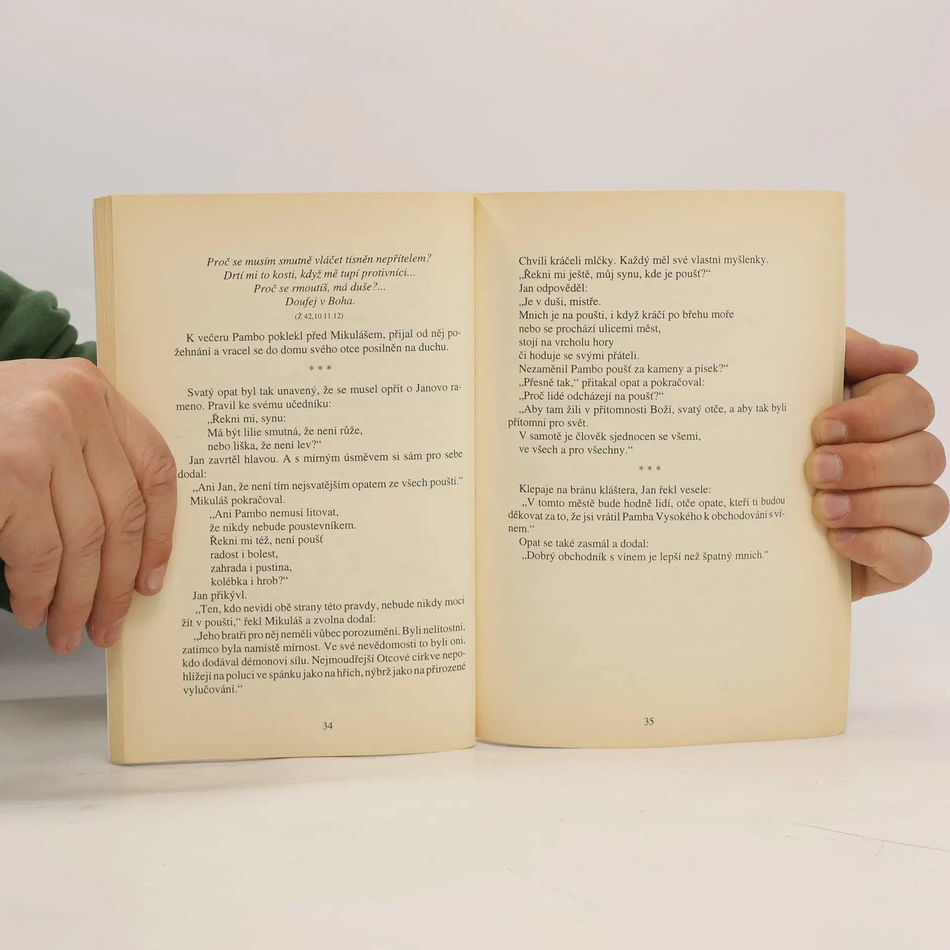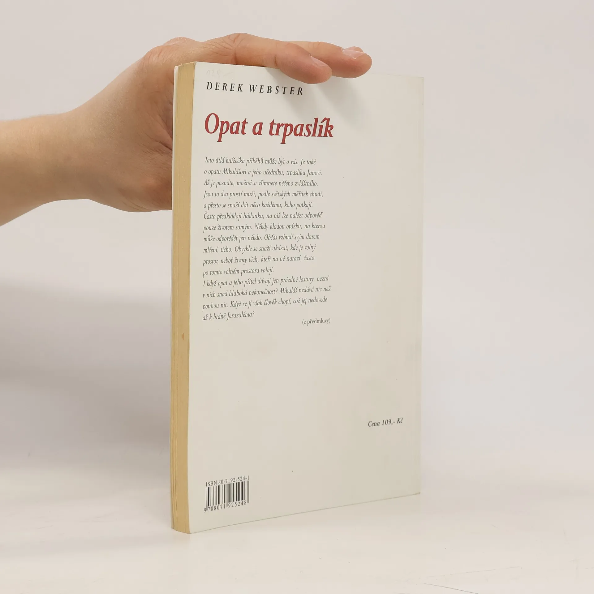 Tato kniha příběhů může být tak trochu i o vás. Je také o opatu Mikulášovi a jeho učedníku, trpaslíku Janovi. Až je poznáte, možná si všimnete něčeho zvláštního. Jsou to dva prostí muži, podle světských měřítek chudí, a přesto se snaží dát něco každému, koho potkají. Často předkládají hádanku, na niž lze nalézt odpověď pouze životem samým. Někdy kladou otázku, na kterou může odpovědět jen někdo. Občas vzbudí svým darem mlčení, ticho. Obvykle se snaží ukázat, kde je volný prostor, neboť životy těch, kteří na ně narazí, často po tomto volném prostoru volají. I když opat a jeho přítel dávají jen prázdné lastury, nezní v nich snad hluboká nekonečnost? Mikuláš nedává nic než pouhou nit. Když se jí však člověk chopí, což jej nedovede až k bráně Jeruzaléma?