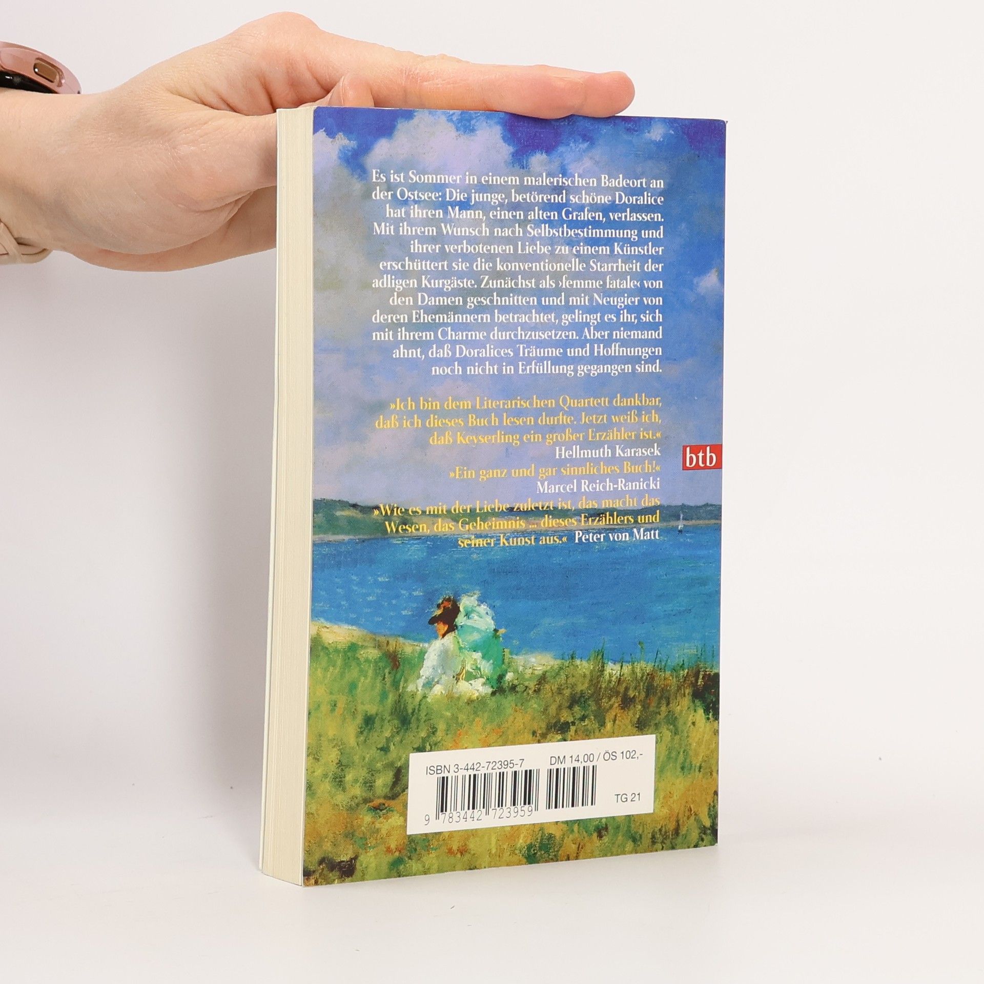 Ein Sommer-Roman »Ein ganz und gar sinnliches Buch, eine schöne Liebesgeschichte.« Marcel Reich-Ranicki Die Generalin von Palikow versammelt ihre Großfamilie zur Sommerfrische an der Ostsee. Irritierend und faszinierend zugleich gerät ein seltsames Paar in den Mittelpunkt: die wunderschöne Gräfin Doralice, die ihren alten Gemahl verlassen hat, und ihr neuer Lebenspartner, der Maler Hans Grill. In der Enge der Idylle zwischen Meer und Dünen entsteht bald ein schicksalhaftes Beziehungsgeflecht, voller Erotik und Dramatik. Eduard von Keyserling, der »baltische Fontane«, und seine Geschichte der schönen Gräfin Doralice, die im Mittelpunkt dieses Sommer-Romans steht, wurden im „Literarischen Quartett“ einhellig gefeiert.
