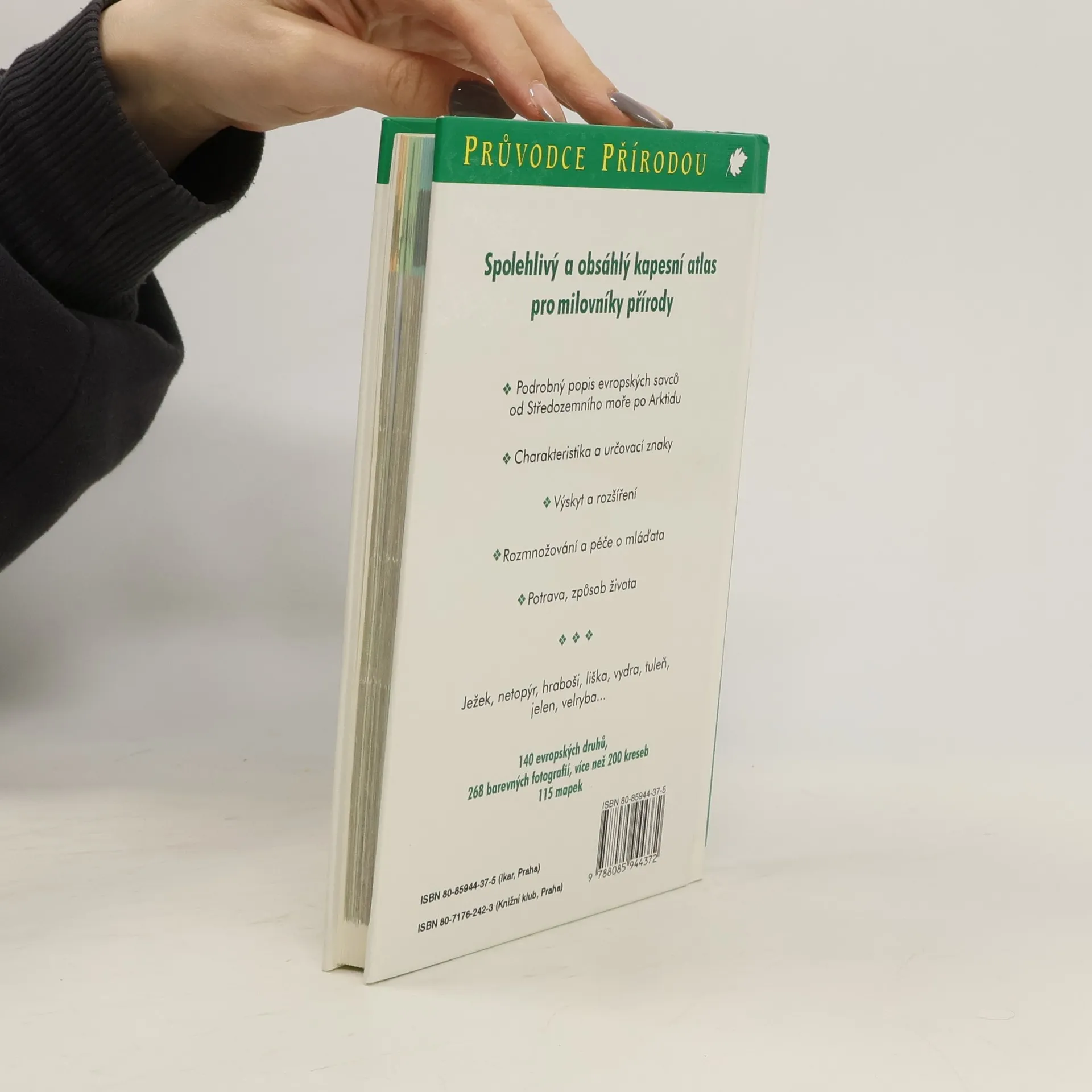 Obrazový atlas evropských druhů savců. Kapesní atlas s krásnými fotografiemi představuje nejtypičtější a nejzajímavější druhy evropských savců. Texty u fotografií charakterizují stručně živočichy, poskytují informace o způsobu jejich života, rozšíření, rozmnožování, o jejich chování a ekologické roli v přírodě. Kniha je členěna systematicky, devět řádů savců je označeno na okrajích stránek symboly se siluetami jejich zástupců. Připojeny jsou i charakteristiky jednotlivých řádů.