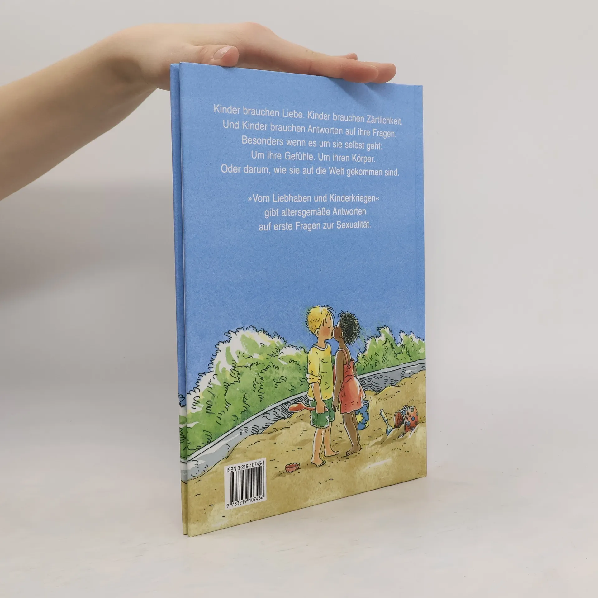 Dieses Kinderbuch handelt ganz eindeutig Vom Liebhaben und Kinderkriegen . Und es ist auch für den kleineren Naseweis (ab vier Jahren) geeignet, lautet der Untertitel schließlich nicht umsonst Mein erstes Aufklärungsbuch . Der Niederländer Sanderijn van der Doef beginnt bei den Basics (Was ist Freundschaft? Und was Liebe? Was unterscheidet Mädchen von Jungen?) und arbeitet sich über "Küssen und Kuscheln" zum "Liebe machen". Mit leichter Hand erklärt er auf einfache Weise, wie Babys entstehen, wo sie wachsen und wie sie auf die Welt kommen. Sogar die Themen Frühgeburt und künstliche Befruchtung finden Platz. Unspektakuläre Aufklärung in kindgerechten Worten und liebevollen Bildern -- so etwas sehen Eltern gern! --Beate Strobel