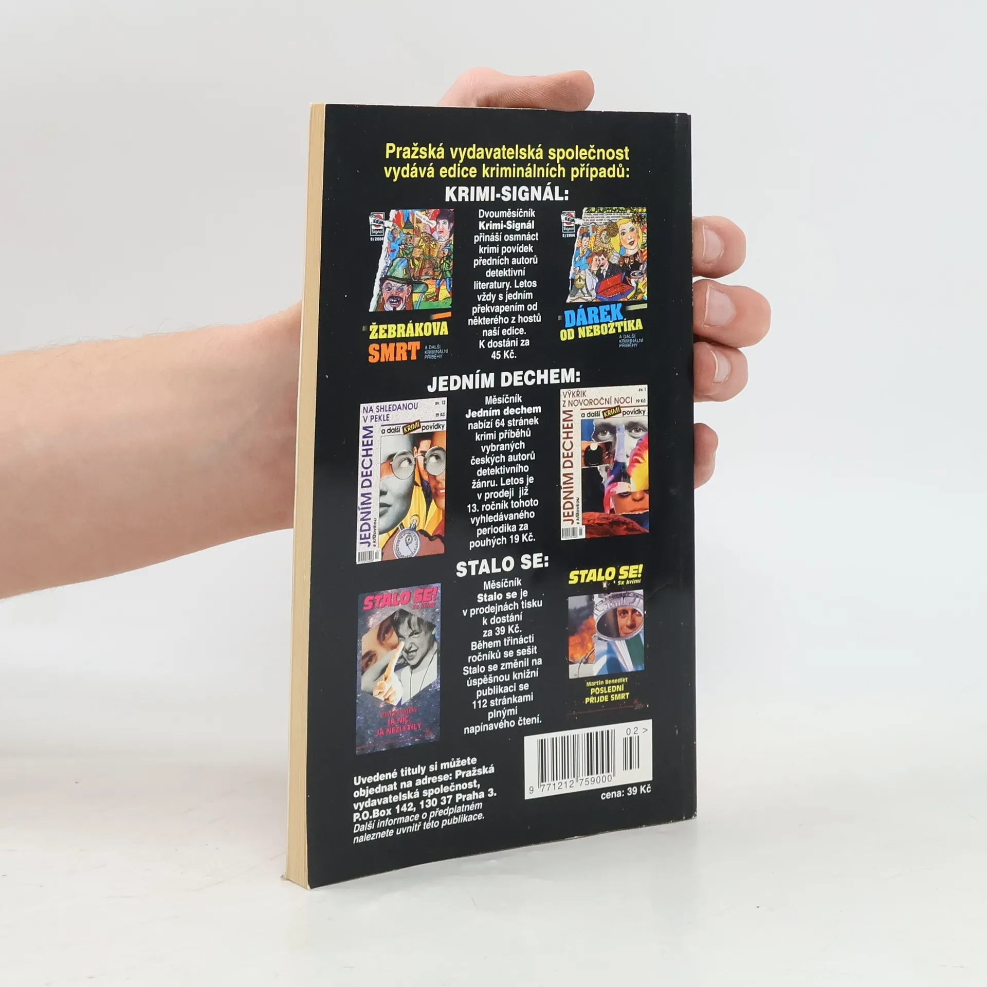 Každý měsíc volné zpracování několika skutečných kriminálních případů, které zneklidnily veřejnost. Součástí publikace je i křížovka o detektivní literatuře se soutěží o ceny z produkce Pražské vydavatelské společnosti.