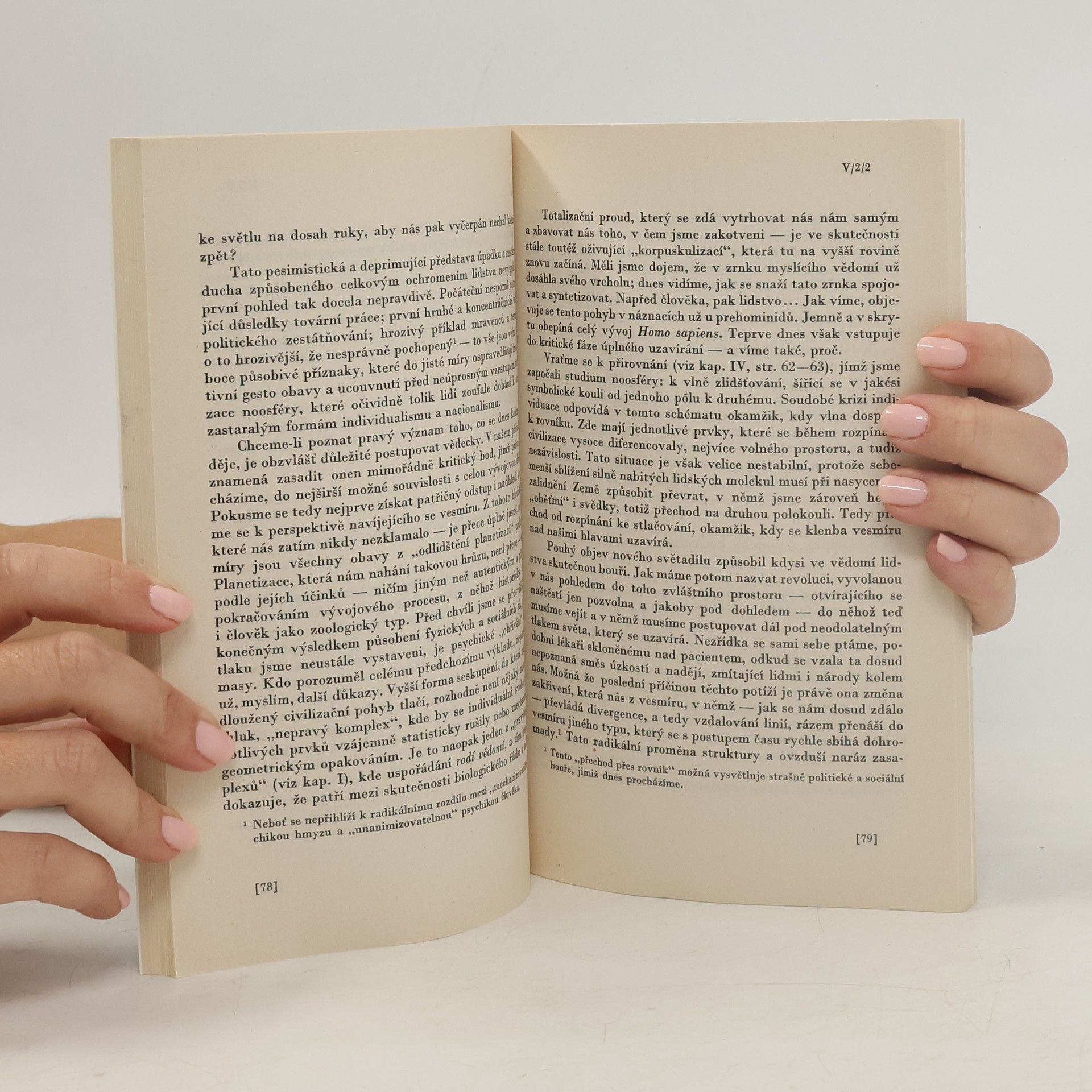 Výbor z díla francouzského katolického filosofa, paleontologa a geologa, představitele „křesťanského evolucionismu“. Kromě práce Místo člověka v přírodě (Lidská zoologická skupina – její struktura a vývojové směry), v níž se soustředuje na problém antropogeneze (I. Místo a význam života ve vesmíru. Spirálovitě se navíjející svět. II. Rozvíjení biosféry a odštěpení antrópoidů. III. Příchod člověka, práh reflexe, IV. Utváření noosféry. 1. Socializace ve fázi rozpínání. Civilizace a individuace. V. Utváření noosféry. 2. Socializace ve fázi stlačování. Totalizace a personalizace. Směry dalšího vývoje), zahrnuje i kratší studie z let 1939–1950. Pojednávají o mystice vědy, ekumenismu, víře v mír a v člověka, psychologických podmínkách lidského sjednocení aj. 2. vydání – reprint