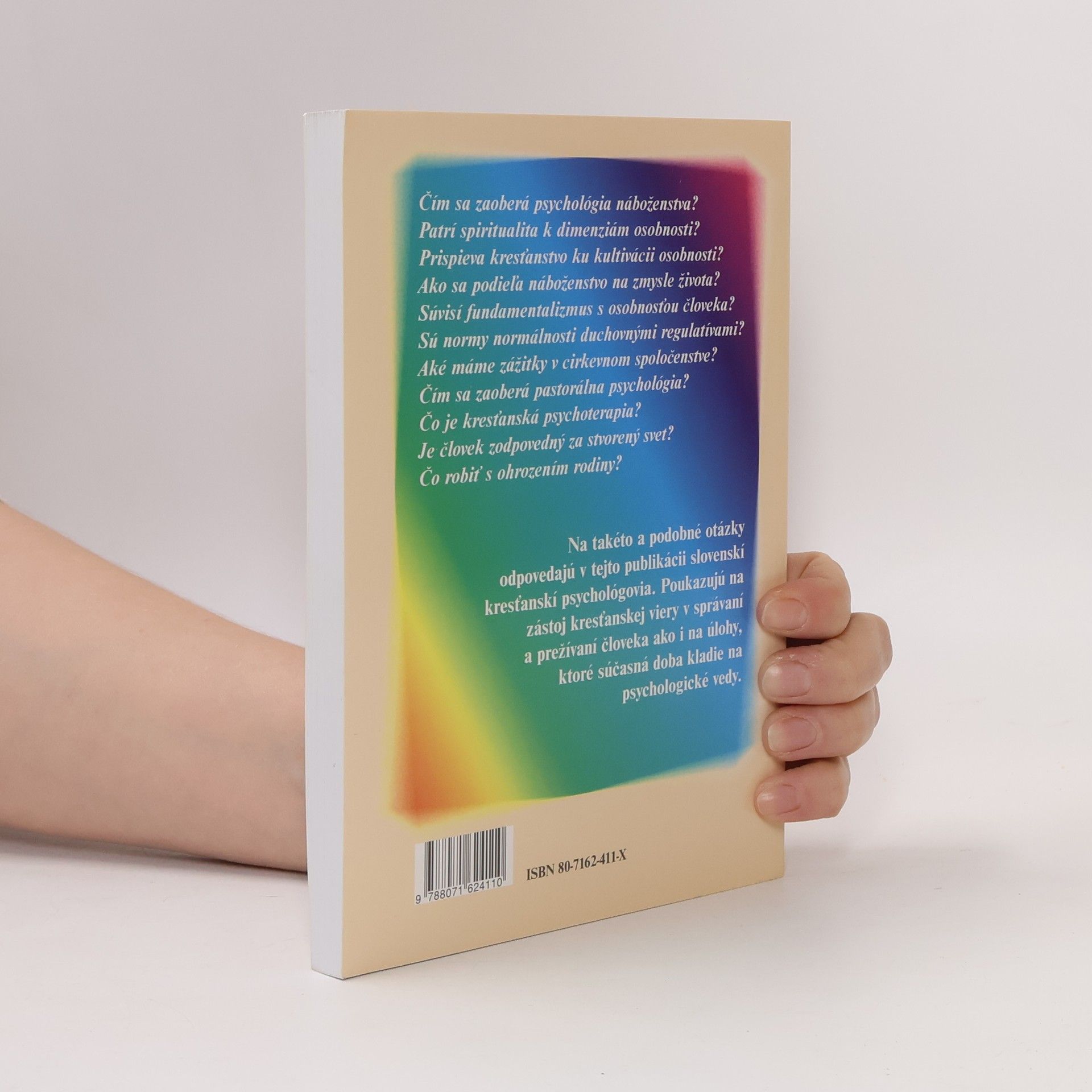 Príspevky zborníka skúmajú, čím kresťanstvo prispieva k psychológii ako vede i profesii. Ich obsah je zaujímavý a podnetný pre odbornú i laickú, veriacu i neveriacu verejnosť. Čím sa zaoberá psychológia náboženstva? Patrí spiritualita k dimenziám osobnosti? Prispieva kresťanstvo ku kultivácii osobnosti? Ako sa podieľa náboženstvo na zmysle života? Súvisí fundamentalizmus s osobnosťou človeka? Sú normy normálnosti duchovnými regulatívami? Aké máme zážitky v cirkevnom spoločenstve? Čím sa zaoberá pastorálna psychológia? Čo je kresťanská psychoterapia? Je človek zodpovedný za stvorený svet? Čo robiť s ohrozením rodiny? Na takéto a podobné otázky odpovedajú v tejto publikácii slovenskí kresťanskí psychológovia. Poukazujú na zástoj kresťanskej viery v správaní a prežívaní človeka ako i na úlohy, ktoré súčasná doba kladie na psychologické vedy.