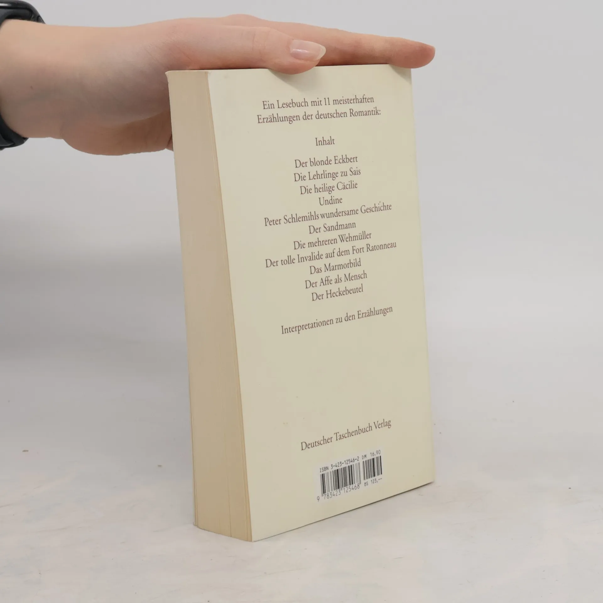 Ein Lesebuch mit 11 meisterhaften Erzählungen der deutschen Romantik:Der blonde EckbertDie Lehrlinge zu SaisDie heilige CäcilieUndinePeter Schlemihls wundersame GeschichteDer SandmannDie mehreren WehmüllerDer tolle Invalide auf dem Fort RaronneauDas MarmorbildDer Affe als MenschDer HeckebeutelInterpretationen zu den Erzählungen