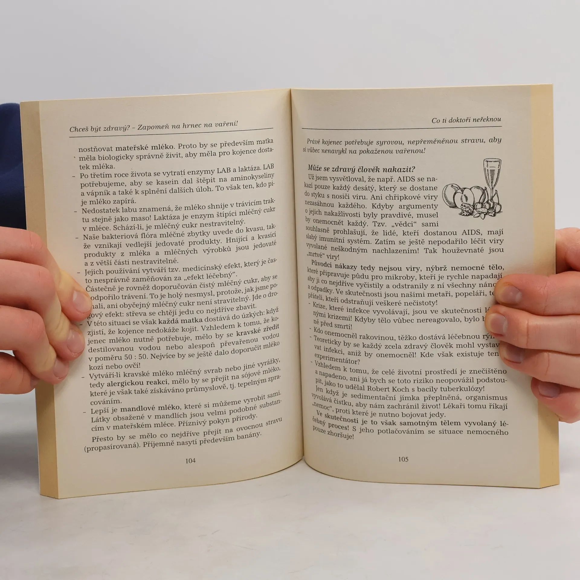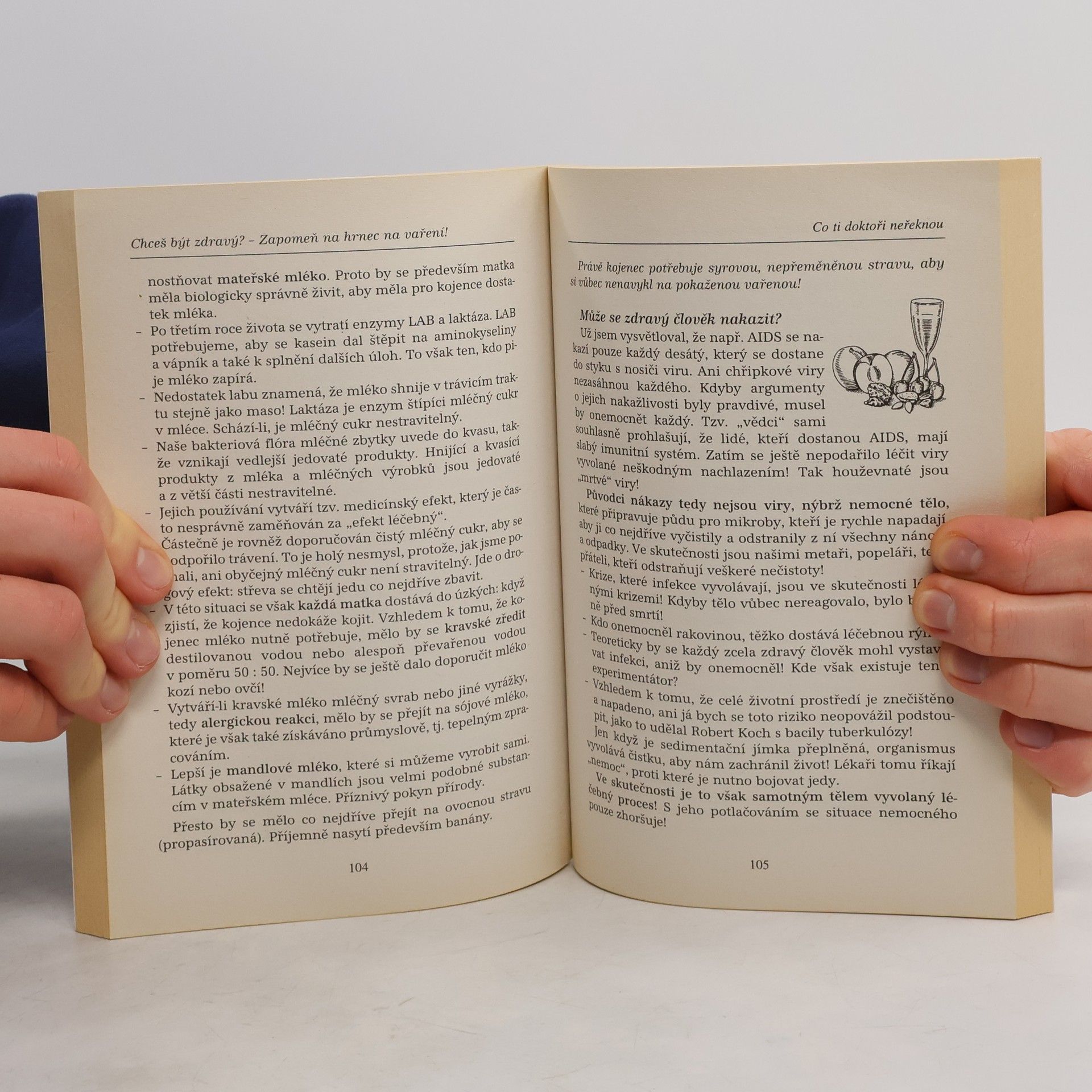 Kniha důrazně apeluje na vhodnost přijímání syrové stravy, což dokumentuje množstvím příkladů a příslibem pevného zdraví.