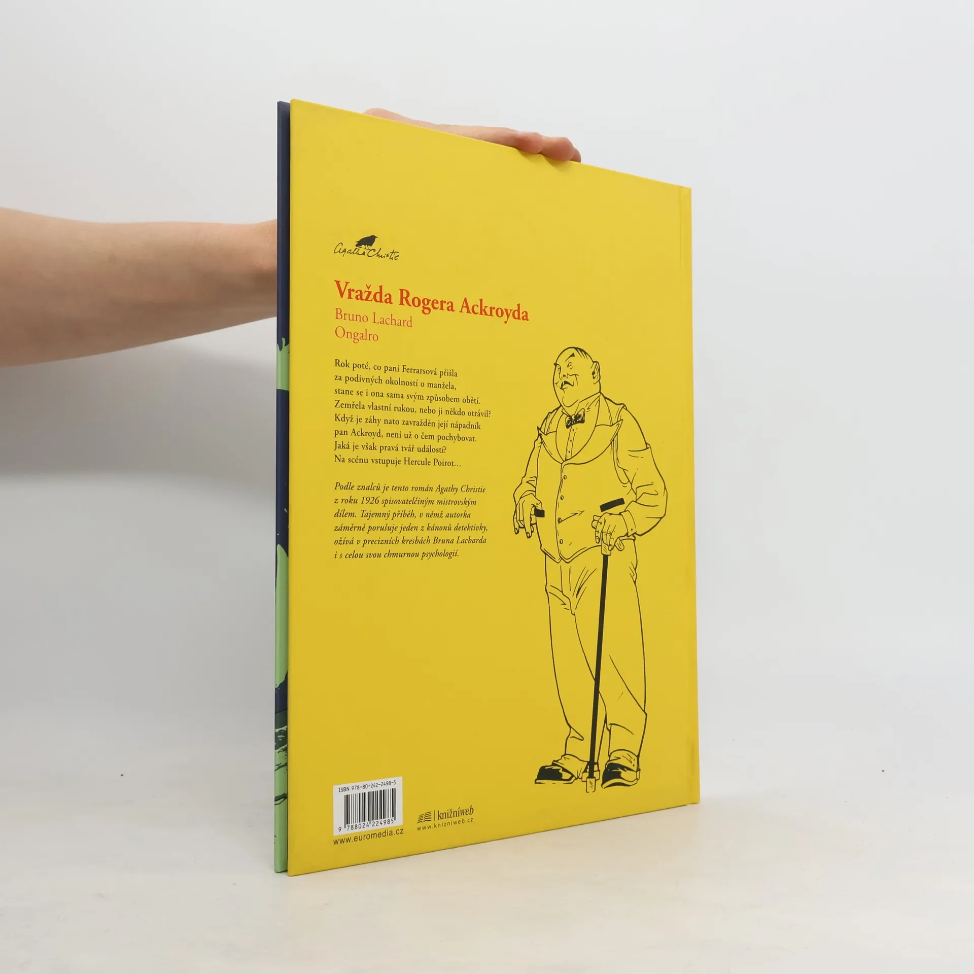 Agatha Christie Vražda Rogera Ackroyda Bruno Lachard Ongalro Rok poté, co paní Ferrarsová přijde za podivných okolností o manžela, stane se i ona sama svým způsobem obětí. Byla to sebevražda, nebo ji někdo otrávil? Když záhy zemře i její nápadník pan Ackroyd, není už o čem pochybovat. Jaká je však pravá tvář těchto událostí? Na scénu vstupuje Hercule Poirot... Podle znalců je tento román Agathy Christie z roku 1926 autorčiným mistrovským dílem. Detektivní záhada v precizních kresbách Bruna Lacharda tu ožívá i s celou svou chmurnou psychologií.