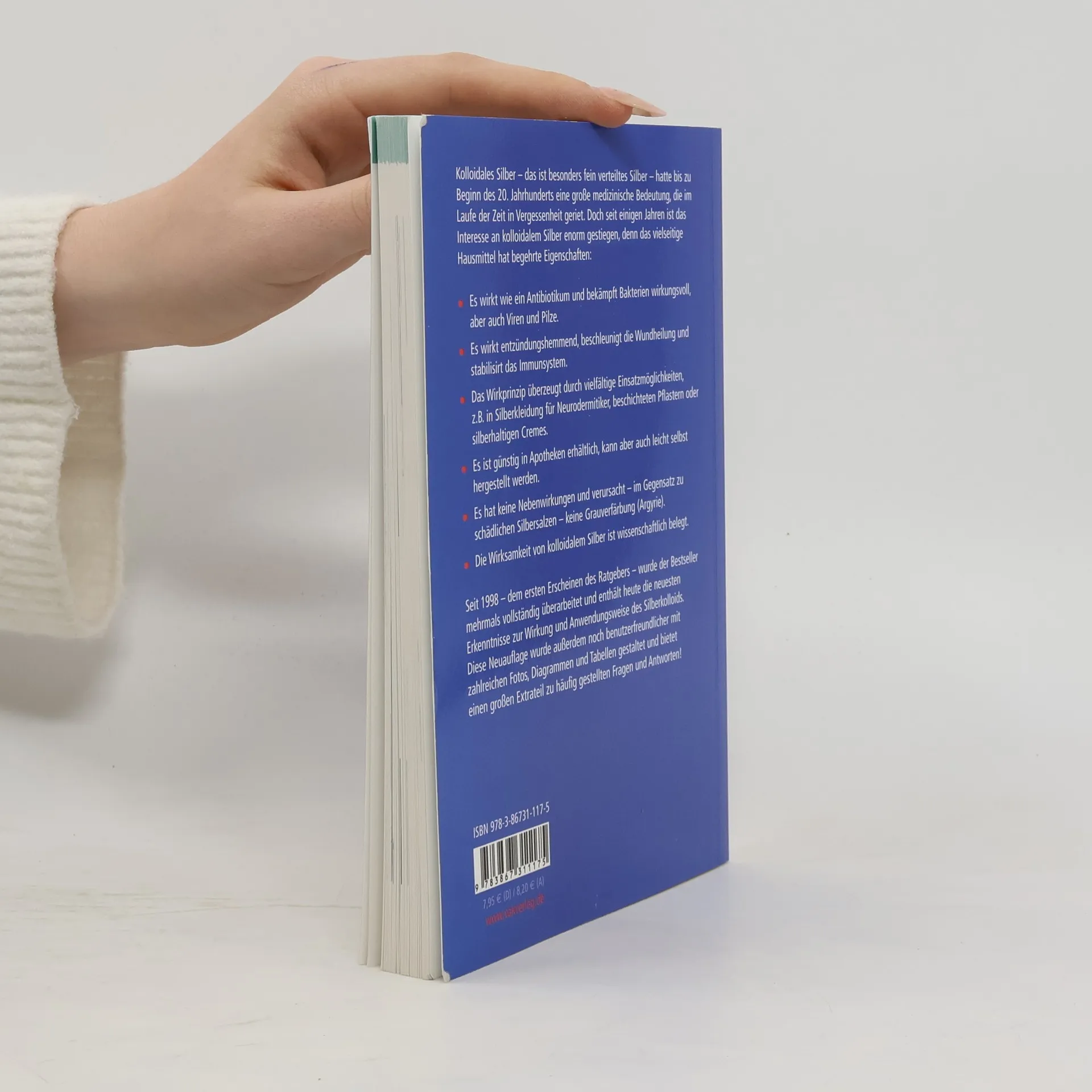 Kolloidales Silber, besonders fein verteilt, hatte bis zum 20. Jahrhundert große medizinische Bedeutung, die jedoch in Vergessenheit geriet. 1998 veröffentlichte VAK eine Einführung in die vielseitigen Anwendungsmöglichkeiten dieses alten Hausmittels und machte es wieder bekannt. Der Ratgeber löste eine „Silber-Welle“ aus, und die Fähigkeiten des Silberkolloids sind seitdem weit verbreitet: Es wirkt wie ein Breitband-Antibiotikum, tötet Bakterien, Viren und Pilzsporen effektiv und ohne Nebenwirkungen ab, wobei kaum Resistenzen entstehen. Dies ist besonders relevant angesichts der Zunahme antibiotikaresistenter Bakterienstämme. Zudem hat kolloidales Silber entzündungshemmende Eigenschaften, beschleunigt die Wundheilung und stärkt das Immunsystem – alles wissenschaftlich belegt. Praktisch ist, dass kolloidales Silber günstig in Apotheken erhältlich ist oder einfach selbst hergestellt werden kann. Die vollständig aktualisierte Neuauflage enthält die neuesten Forschungsergebnisse zur Wirkung und Anwendung des Silberkolloids. Sie ist umfassend bebildert, benutzerfreundlich gestaltet und bietet zahlreiche Erfahrungsberichte sowie einen Sonderteil mit häufigen Fragen und Antworten.