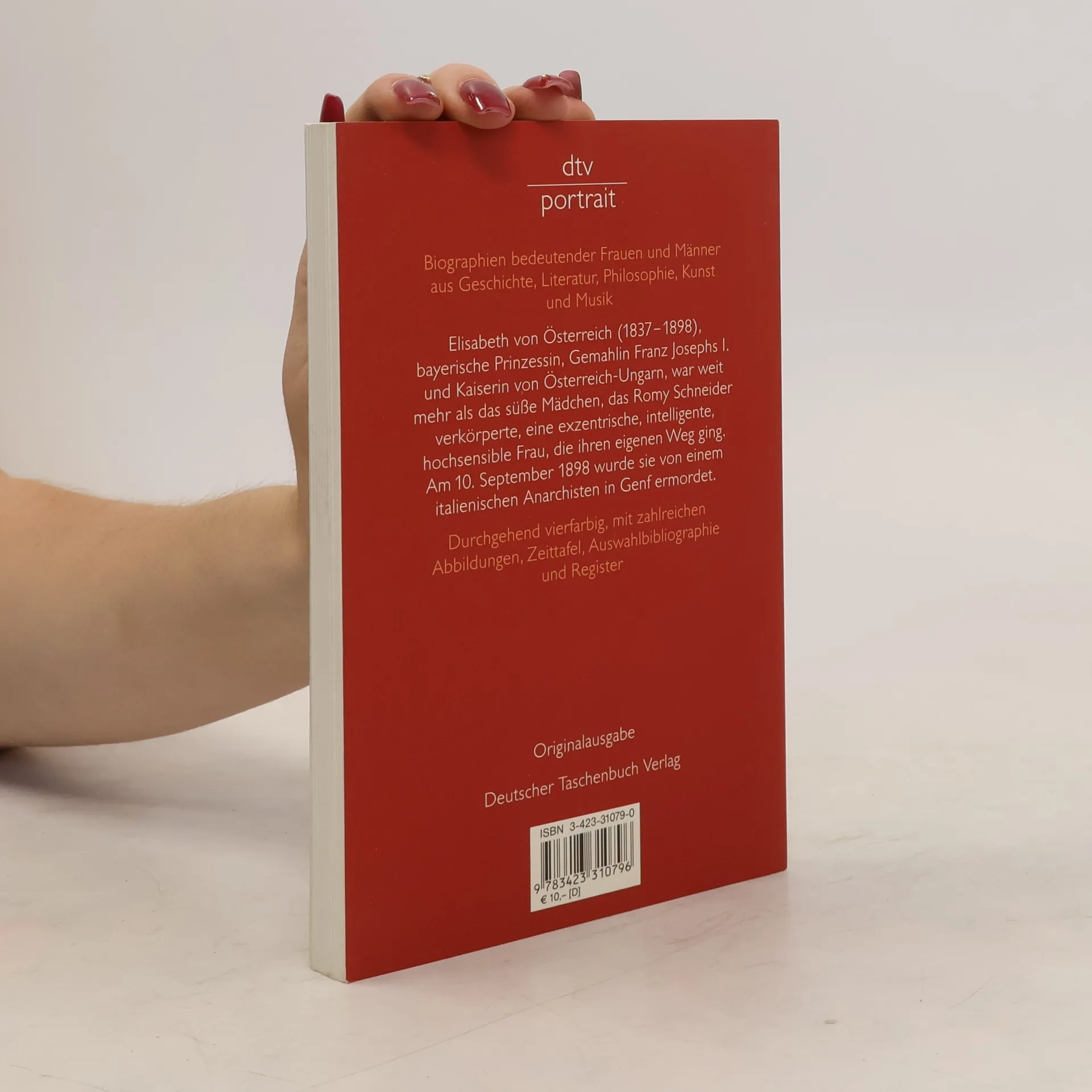Aus der Reihe >> dtv portrait<< Elisabeth von Österreich (1837 - 1898), bayerische Prinzessin, Gemahlin Franz Josephs I. und Kaiserin von Österreich-Ungarn, war weit mehr als das süße Mädchen, das Romy Schneider verkörperte, eine exentrische, intelligente, hochsensible Frau, die ihren eigenen Weg ging. Am 10. September 1898 wurde sie von einem italienischen Anarchisten in Genf ermordet. Mit zahlreichen Abbildungen, Zeittafel, Auswahlbibliografie und Register.