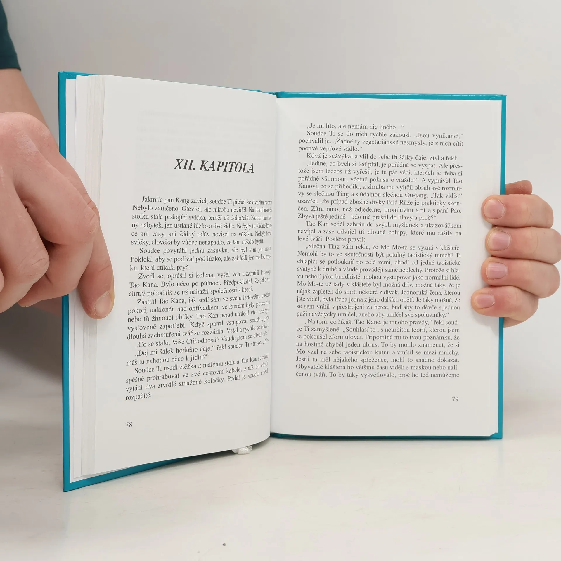 Soudce Ti musí se svým pomocníkem Tao Kanem kvůli bouři přenocovat v taoistickém klášteře v horách Chan-jüanu a vyřeší zde tři záhadné případy. Případ balzamovaného opata, případ zbožné panny a případ nevraživého mnicha. Zajímavé na této knize je, že autor převzal základní motiv (oči kočky), který je klíčem k rozuzlení záhadné smrti opata, z anekdoty o slavném básníkovi Ou-Jang Siu (1007 - 1072). Básník totiž vlastnil starý obraz kočky mezi pivoňkami, o němž prohlásil, že musel být namalován v poledne, protože kočka má přimhouřené oči a květy pivoňky jsou povadlé. Tradiční je též kompozice vyprávění, kdy soudce Ti, po vzoru klasických čínských detektivních příběhů, řeší několik případů najednou.