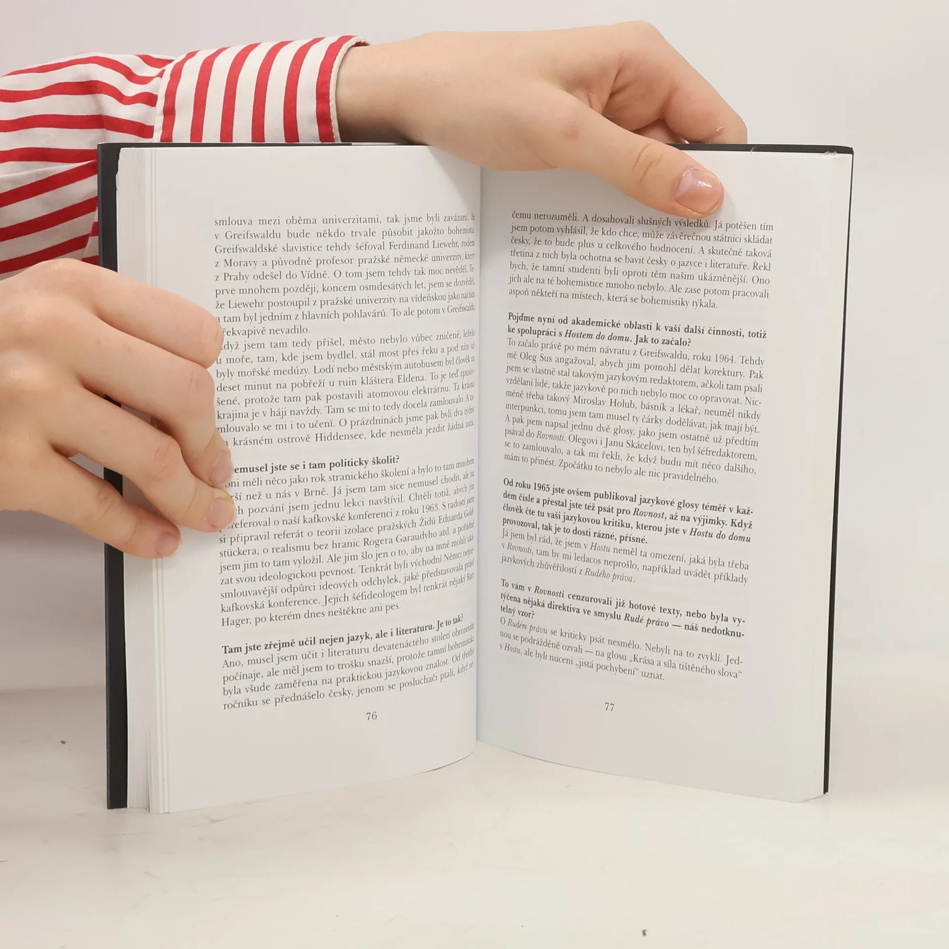 Profesor Dušan Šlosar je výrazná brněnská osobnost, která vychovala několik generací bohemistů a za nechala nesmazatelnou stopu v oblasti historického vývoje jazyka a dialektologie. Nadto mu není cizí přemítání o jazyce způsobem přístupným pro širší publikum: napsal tři popularizační knihy, které se setkaly s velmi vřelým ohlasem. Téměř celým svým odborným životem je spjat s brněnskou filozofickou fakultou. Rozhovor, který s ním vedou dva jeho bývalí žáci, se drží životopisné linie: dětství ve Staříči a sousedním Sviadnově u Frýdku-Místku, studia v Brně, první zaměstnání v Akademii věd, brněnská fakulta v 60. letech, srpnová invaze v Brně, normalizace, listopad 1989 a to, co přišlo po něm. Závěrečná kapitola je věnována otázkám jazyka a jazykové kultury, zejména té současné. Dušan Šlosar se v rozhovoru ukazuje jako osobnost všestranných zájmů, jasných a neuhýbavých názorů a velmi plastické paměti, která je schopna vynést na světlo dávno zapomenuté lidi i události. Kniha je vybavena bohatým doprovodným materiálem (fotografie, kopie zajímavých dokumentů ad.), soupisem hlavních prací Dušana Šlosara a životopisným kalendáriem.