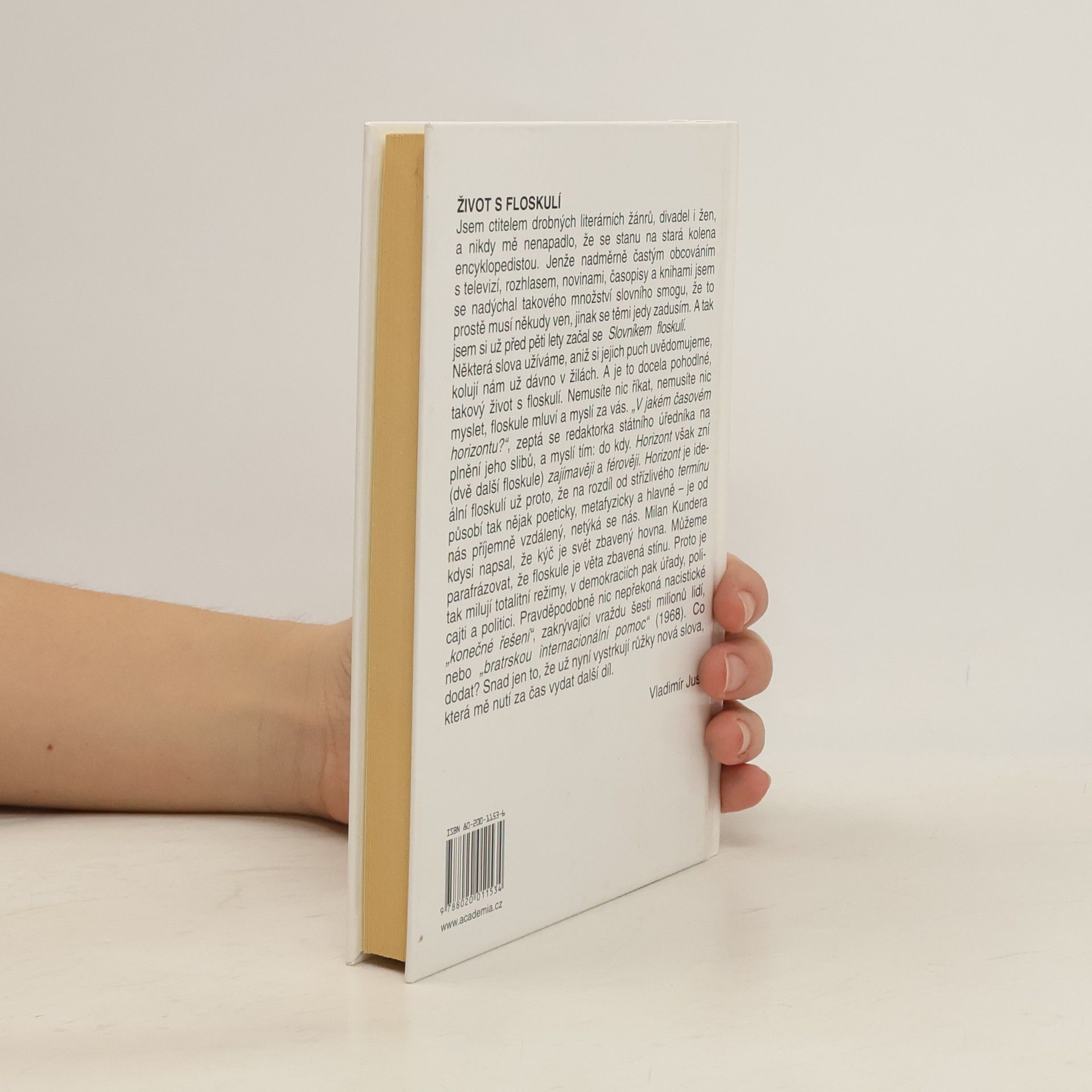 Malá encyklopedie polistopadového newspeaku: klišé, slogany, hantýrky, tiky, partiové metafory, slovní smogy. Vladimír Just se častým obcováním s televizí, rozhlasem, novinami a časopisy nadýchal takového množství slovního smogu, že před pěti lety začal psát Slovník floskulí. „V jakém časovém horizontu?“, zeptá se redaktorka úředníka a myslí tím: dokdy. Nemusíte nic říkat, nemusíte si nic myslet – floskule mluví a myslí za vás. Proto je tak milují totalitní režimy, v demokraciích pak úřady, policajti a politici.
