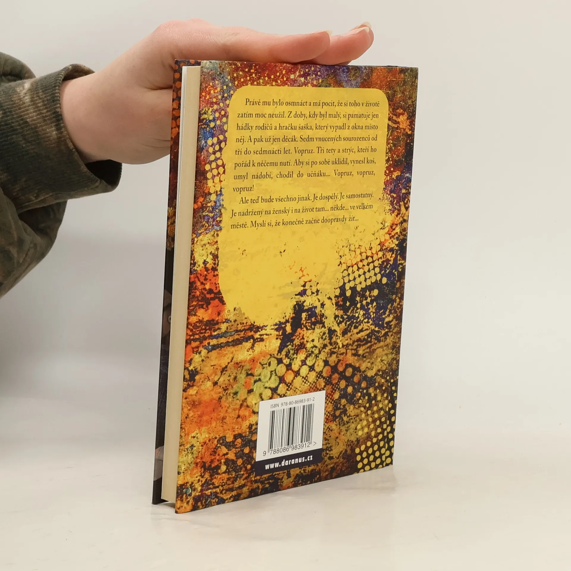 Právě mu bylo osmnáct a má pocit, že si toho v životě zatím moc neužil. Z doby, kdy byl malý, si pamatuje jen hádky rodičů a hračku šaška, který vypadl z okna místo něj. A pak už jen děcák. Sedm vnucených sourozenců od tří do sedmnácti let. Vopruz. Tři tety a strýc, kteří ho pořád k něčemu nutí. Aby si po sobě uklidil, vynesl koš, umyl nádobí, chodil do učňáku… Vopruz, vopruz, vopruz! Ale teď bude všechno jinak. Je dospělý. Je samostatný. Je nadržený na ženský i na život tam… někde… ve velkém městě. Myslí si, že konečně začne doopravdy žít…