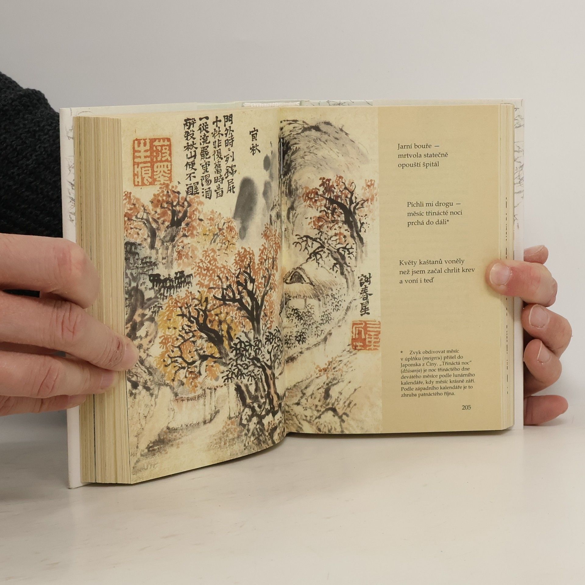 Největší antologie japonské poezie haiku v češtině obsahuje přes osm set vybraných děl od sedmdesáti autorů, počínaje zakladatelem žánru Bašóem z 17. století a konče modernisty 20. století. Výběr, překlad a uspořádání provedl Antonín Líman, který také napsal biografické medailony autorů a doslov spolu s Denisou Vostrou. Kniha je ilustrována malbami Josy Busona a dalších umělců, přičemž poznámku o ilustracích napsal Robin Heřman ve spolupráci s Česko-japonskou společností. Obsah zahrnuje předmluvu Antonína Límana a úvod k haiga, obrazovému haiku, od Robina Heřmana. Další části se zaměřují na desítku starých mistrů, Bašóovy žáky, zenové mnichy a mistry, Busonovy žáky a současníky, a nakonec na pětatřicet moderních mistrů haiku z 19. a 20. století. Kniha rovněž obsahuje kapitolu o vývoji japonské poezie a sedmnáctislabičné básně haiku, spolu s bibliografickými poznámkami a rejstříkem autorů haiga. Tato antologie představuje významný příspěvek k porozumění a ocenění japonské literární tradice.