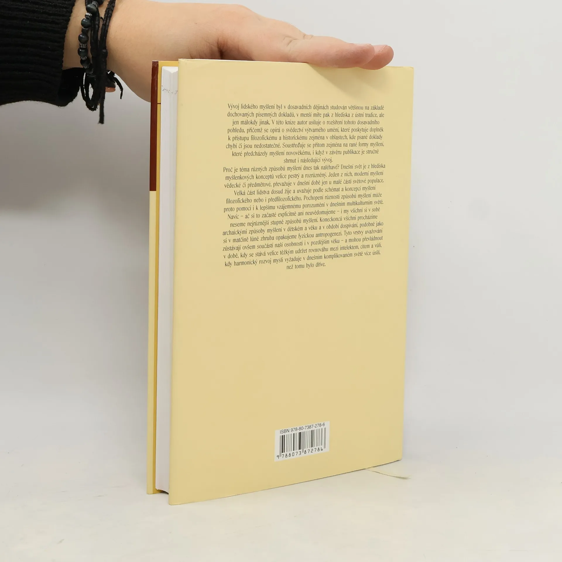 Vývoj lidského myšlení byl v dosavadních dějinách studován většinou na základě dochovaných písemných dokladů, v menší míře pak z hlediska z ústní tradice, ale jen málokdy jinak. V této knize autor usiluje o rozšíření tohoto dosavadního pohledu, přičemž se opírá o svědectví výtvarného umění, které poskytuje doplněk k přístupu filozofickému a historickému zejména v oblastech, kde psané doklady chybí či jsou nedostatečné. Soustřeďuje se přitom zejména na rané formy myšlení, které předcházely myšlení novověkému, i když v závěru publikace je stručně shrnut i následující vývoj. Proč je téma různých způsobů myšlení dnes tak naléhavé? Dnešní svět je z hlediska myšlenkových konceptů velice pestrý a rozrůzněný. Jeden z nich, moderní myšlení vědecké či předmětové, převažuje v dnešní době jen u malé části světové populace.