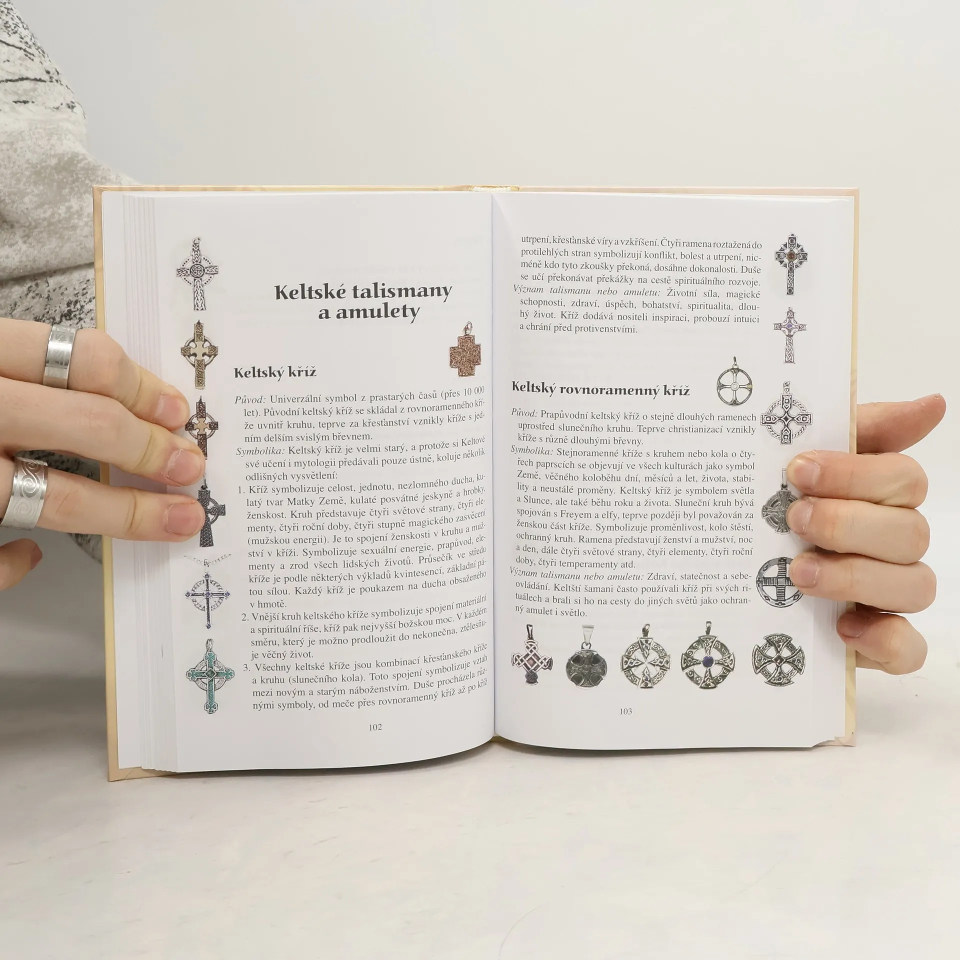 Obrazová encyklopedie symbolů křesťanství, buddhismu a dalších náboženství i národů (např. Keltové) s jejich výkladem a vyobrazením. Obrázky talismanů s výkladem jejich významu jsou řazeny podle náboženství a kultů. Připojen slovníček kultovních významů symbolů a abecední rejstřík.