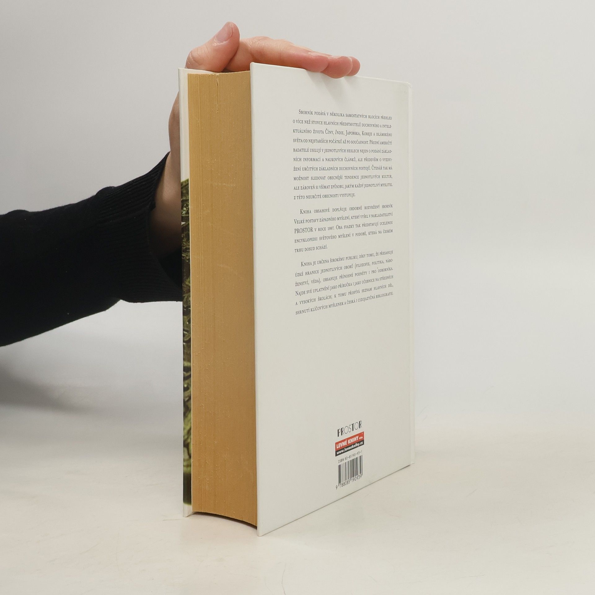 Sborník podává v několika samostatných blocích přehled o více než stovce hlavních představitelů duchovního a intelektuálního života Číny, Indie, Japonska, Koreje a islámského světa od nejstarších počátků až po současnost. Přední američtí badatelé usilují v jednotlivých heslech nejen o podání základních informací a naukových článků, ale především o vyzdvižení určitých základních duchovních postojů. Čtenář tak má možnost sledovat obecnější tendence jednotlivých kultur, ale zároveň si všímat způsobu, jakým každý jednotlivý myslitel z této neurčité obecnosti vystupuje.Kniha obsahově doplňuje obdobně rozvržený sborník Velké postavy západního myšlení, který vyšel v nakladatelství PROSTOR v roce 1997. Oba svazky tak představují ucelenou encyklopedii světového myšlení v podobě, která na českém trhu dosud schází.Kniha je určena širokému publiku; díky tomu, že přesahuje úzké hranice jednotlivých oborů (filozofie, politika, náboženství, věda), obsahuje přínosné podněty i pro odborníka. Najde své uplatnění jako příručka i jako učebnice na středních a vysokých školách; k tomu přispívá seznam hlavních děl, shrnutí klíčových myšlenek a česká i cizojazyčná bibliografie.... celý text
