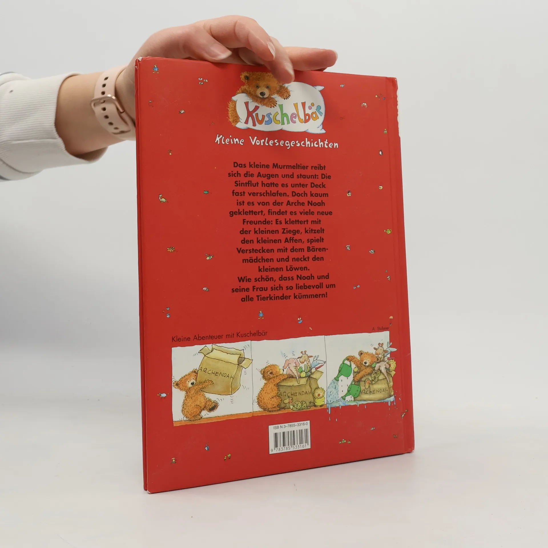 Das kleine Murmeltier reibt sich die Augen und staunt: Die Sintflut hatte es unter Deck fast verschlafen. Doch kaum ist es von der Arche Noah geklettert, findet es viele neue Freunde: Es klettert mit der kleinen Ziege, kitzelt den kleinen Affen, spielt Verstecken mit dem Bärenmädchen und neckt den kleinen Löwen. Wie schön, dass Noah und seine Frau sich so liebevoll um alle Tierkinder kümmern