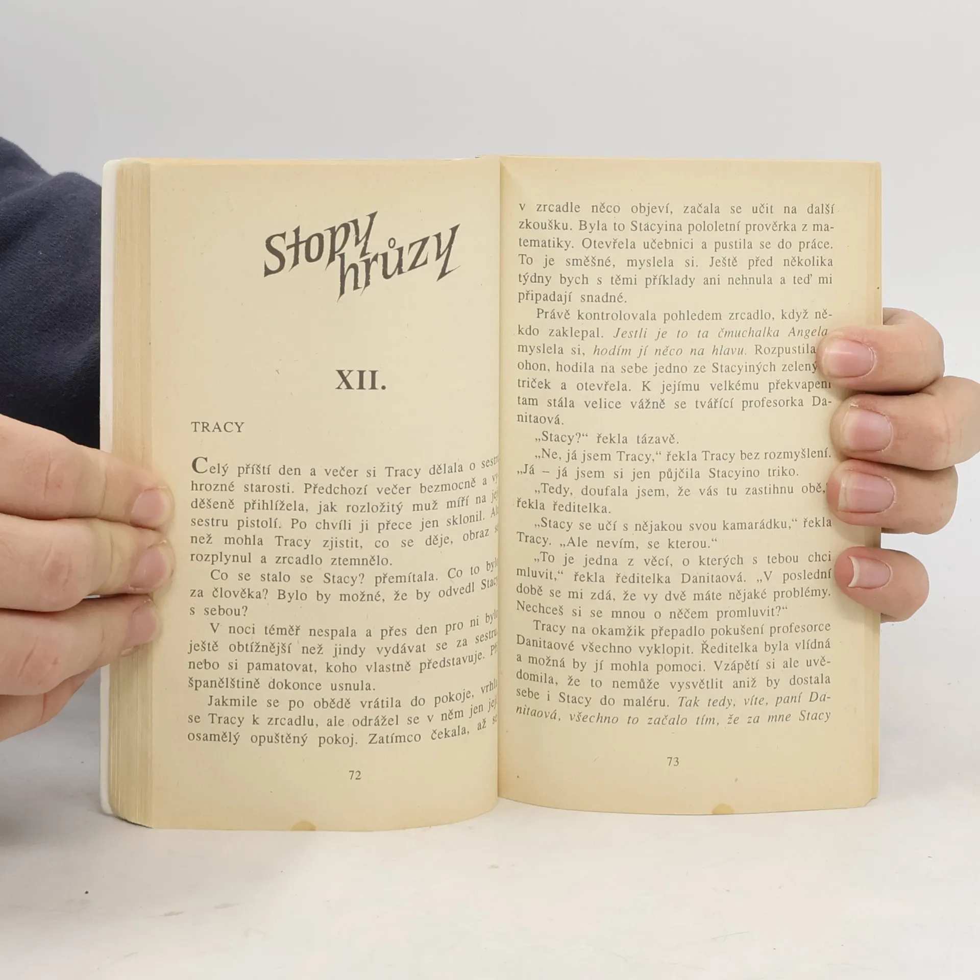 Stacy Jamesová je vtažena zrcadlem do strašlivé noční můry! Její dvojče – Tracy – musí předstírat, že se nic neděje a vydávat se i za svou sestru. Zároveň se zoufale snaží dostat Stacy zpět ze světa za zrcadlem. Podaří se dvojčatům odhalit tajemství zrcadla dříve, než vyprší čas? Nebo bude muset Stacy čelit dívce se sekyrou sama?