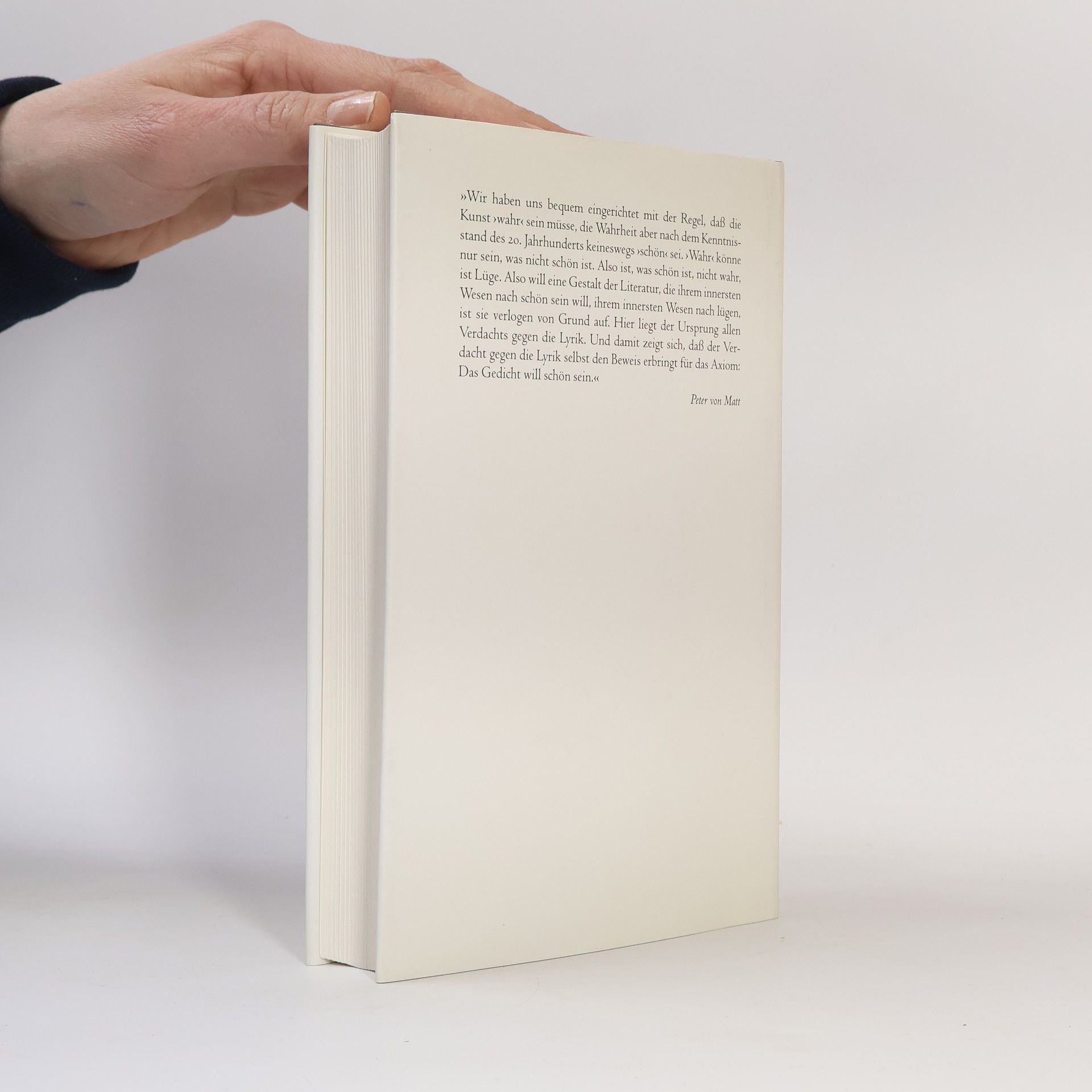 »Niemand weiß, was ein Gedicht ist, aber alle wissen ganz genau, warum eigentlich keine mehr geschrieben werden dürften.« So beginnt Peter von Matt seinen großartigen Einleitungsessay zu diesem Buch. Wie und mit welchem Genuß man Gedichte lesen kann, führt er im zweiten Teil des Buches vor: ob es sich um die Sonette Shakespeares handelt oder Ernst Jandls Gedichte, um Goethe oder Trakl, unter Matts kluger Anleitung entfalten die Texte ihre verborgensten Absichten.
