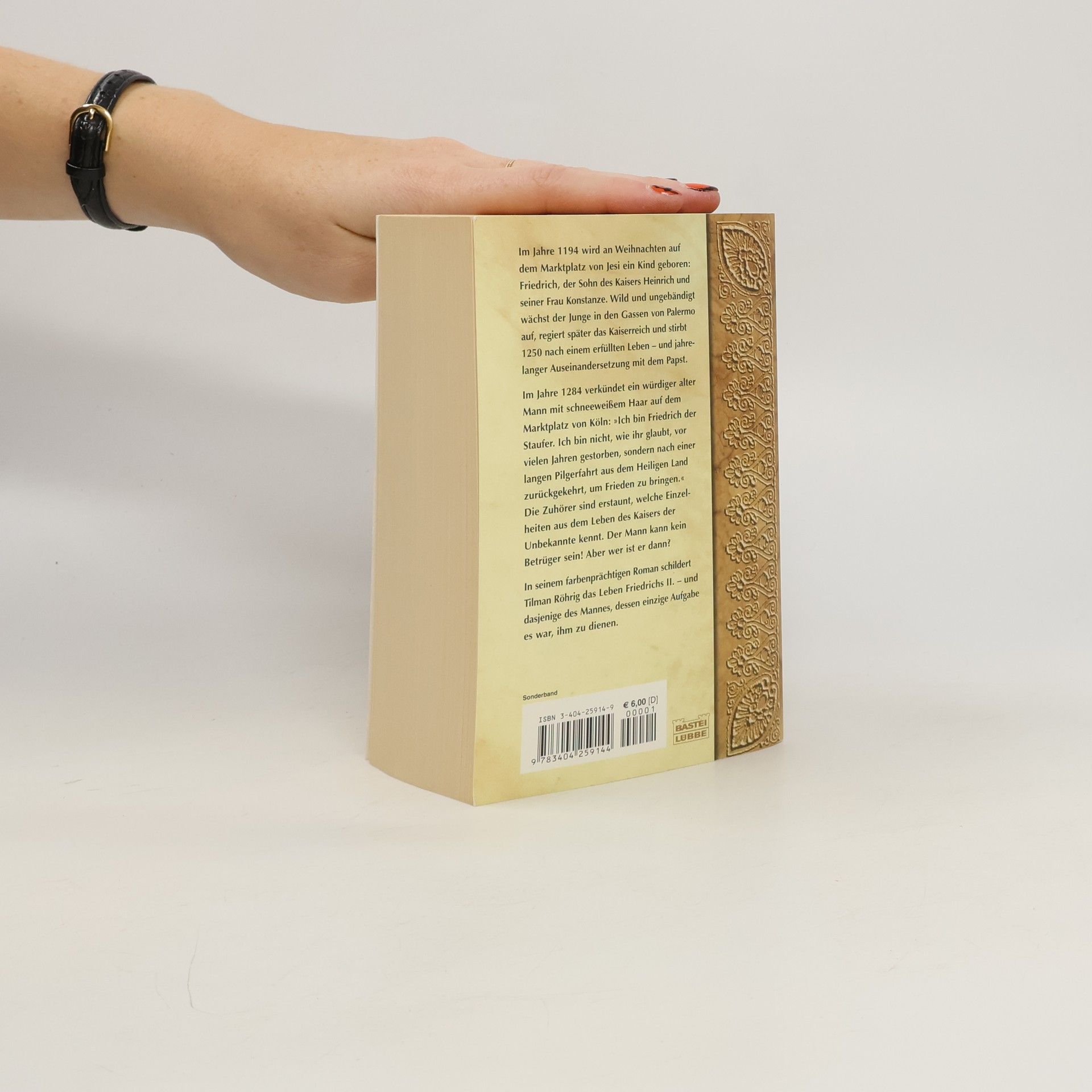 Deutscher Autor, geb. 1945. - Roman um den Stauferkönig Friedrich II. (1194-1250), der von seinen Zeitgenossen bewundert und gehaßt wurde, sich mit gottlosen Wissenschaften beschäftigte und dem schließlich der Konflikt zwischen Papst- und Königtum zum Verhängnis wurde