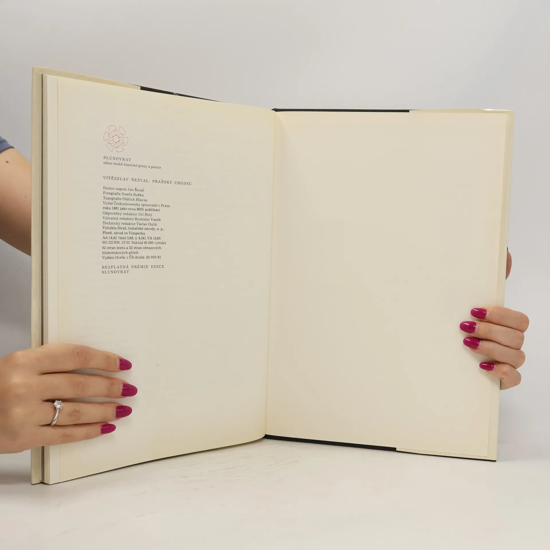 Lyrický zápisník jednoho Nezvalova pražského roku. Básník nás v něm provází známými i méně známými místy Prahy, objevuje skryté půvaby a poezii jejich zákoutí, vyslovuje okouzlení atmosférou svého milovaného města. Čtvrté vydání.